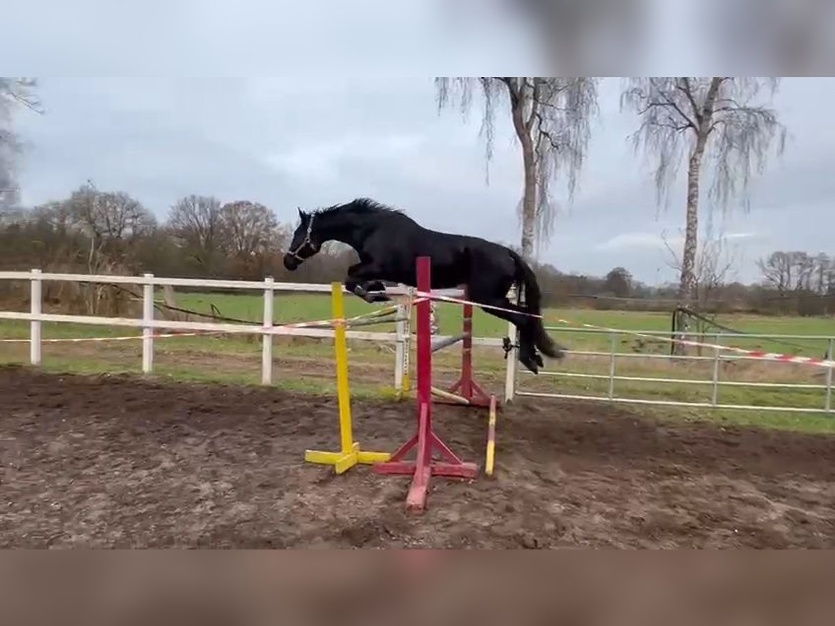 I purchased this mare myself just last year. Shortly thereafter, I found out I was expecting twins. This mare is so eager to learn that it would be a shame for her to stand around unused. She was originally intended to be my future competition horse, but unfortunately, I simply won't have the time to train her properly. She is worked on a daily basis. The mare is very affectionate and enjoys cuddling. She has such quick, agile front legs when jumping. It’s really a pity that I have to part with her, but she would feel more comfortable with a rider who actively works with her. I lunged her for three or four months to properly prepare her for riding. Afterwards, I sat on her (while pregnant). I always felt confident with her, otherwise I wouldn’t have done it. After the fourth ride, I felt the urge to go for a walk in the field at a walk. She is simply so well-behaved. There’s no need to longe her before riding. She has enough go and is not overly hot or spirited under saddle. We don’t have an indoor riding arena, and she has always been ridden outside next to a road. That doesn’t bother her. We have also been out on two trail rides. I can imagine someone who enjoys high-level show jumping but also rides dressage or eventing. I also see her fitting well with a young, ambitious rider because she is so calm and reliable. The mare is absolutely stunning. Just look at her and fall in love.