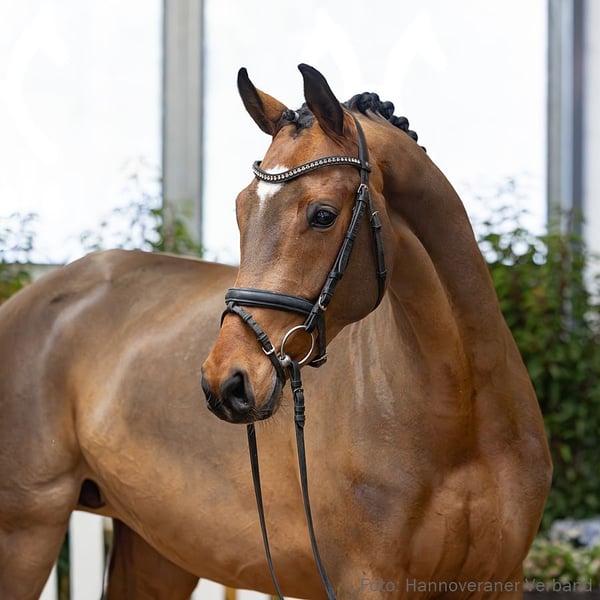 Das Pferd ist ein Verdener Auktionspferd und wird am 18.04.2026 onlive versteigert. Vom 6.04. bis zum 18.04. kann das Pferd jeden Tag beim öffentlichen Training besichtigt und ausprobiert werden. Das Startgebot bei der Versteigerung ist 8.000 Euro. Juvena ist aufgrund ihrer Größe ideal als Junioren- oder Damenreitpferd. Hohe Rittigkeit und großer Reitkomfort machen sie zur perfekten Partnerin. Ihr Talent für das Dressurviereck wird durch einen erfolgreichen Mutterstamm untermauert, angeführt von Funrise FRH (S*** mit Tessa Frank), Springsteen (S* mit Emma Gömmer) sowie dem gekörten Hengst Fürst Furioso 2 (S* mit Maja Schnakenberg). 2. Generation Sportpferde Dressur: Feldwebel HAKA von Velen/Funrise FRH v. Flanell (DRE: S*** mit Tessa Frank,Dressurpferdeprfg. Kl.S -Bundeschampionat 7 jährige 2023,VA 2018); gek. Hengst Fürst Furioso/Fürst Furioso 2 v. Bretton Woods (DRE: S* mit Maja Schnakenberg,Verden 2015,FoVA 2013,HM 2015); Bailey von Velen v. Bonifatius (DRE: M* mit Charlotte Corinna Koeppen). Bes. Prämientöchter: HannPrA Roulette QS v. Radius. 3. Generation Sportpferde Dressur: Habanero Uno v. Hotline (DRE: S* mit Yasmin Landau,VA 2012); Springsteen 11 v. Sir Donnerhall I (DRE: S* mit Emma Gömmer); Enio G v. Escolar (DRE: M* mit Marie Brisseau). Aufbauprüfungen Dressur: Glamourgirl G v. Glamourdale (DRE: L); gek. Hengst Geronimo G/Geronimo 760 v. Glamourdale (DRE: L,MS-Handorf 2021); HannPr Evita G v. Escolar (DRE: L). Auktionspferde: StPr Fürstin Hohenstein v. Fürst Heinrich (FoVA 2004,VA 2008); Fürstin Lewitz/Fuerstin-Hohenstein v. Fürst Heinrich (FoVA 2002). Bes. Prämientöchter: HannPrA Rosalie QS v. Raven; HannPrA Lillifee G v. Lord Loxley; StPr For Fantasy v. For Compliment; StPr Fürstin-Hohenstein III v. Fürst Heinrich. 4. Generation Sportpferde Springen: Cassia BM v. Canstakko (SPR: 1,40 m mit Marie Luise Mohr). Bes. Prämientöchter: StPr Habanera v. Hohenstein. 5. Generation Sportpferde Dressur: Loreley/La Lili v. Lord Fauntleroy (DRE: M* mit Milena Lustig,SPR: 1,30 m mit Milena Lustig). Sportpferde Springen: Following Dream D v. For Edition (SPR: 1,50 m mit Dirk Klaproth); Contessa D/Contessa D 2 v. Chasseur I (SPR: int. 1,40 m mit Silke Kröckel); Chardonnay 116 v. Chacco Chacco (SPR: 1,45 m mit Calvin Böckmann,Springprfg.Kl.S m.St.** Bundeschampionat 7 jährige 2023,Springprfg.Kl.M** m.St. Bundeschampionat 6 jährige 2022,Spezialspringpferdeprfg. Kl.M* m.2 Uml. Bundeschampionat 5 jährige 2021); Goombay Dancer v. Grand Cru (SPR: 1,40 m mit Ilona Mäkipere); Alinea/Argentinia 8 v. Argentan (SPR: 1,40 m mit Hess,Christian); Clintea v. Clintord I (SPR: 1,35 m mit Sophia Alff,FoVA 2009); Queen-D/Queen -D v. Quaid I (SPR: 1,35 m mit Katharina Rohn); Loreley/La Lili v. Lord Fauntleroy (DRE: M* mit Milena Lustig,SPR: 1,30 m mit Milena Lustig); Nena Love v. Nerrado (SPR: 1,30 m mit Katharina Seroka). Aufbauprüfungen Springen: Casalino 7 v. Casallato (SPR: 1,30 m mit Marie Terhoeven-Urselmans); Stradivari 34 v. Stanley (SPR: L); Frieda/Flying Dream D v. For Edition (SPR: L). Auktionspferde: Conny D v. Comte (VA 2018). Bes. Prämientöchter: StPr Auenmelodie/Amabilis 2 v. Argentan. Mutter: Symphonie D'Amour ZL: 2/1 Turniererfolge: DRE: A 1/1. DPF: A 1/1. 1/4. Großmutter: Fürstin-Hohenstein III Prämierung: 1xIa. ZL: 11/8 ZSP: Feldprüfung Reitpferd - Trab 8,50 Galopp 8,50 Schritt 7,50 / Durchschnitt Rittigkeit 8,00 / Durchschnitt Springen 7,00