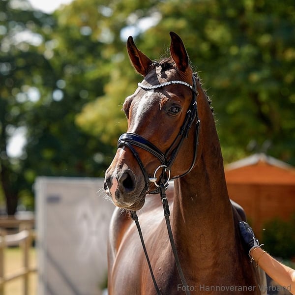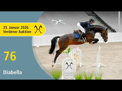 Diabella – erstklassig gezogene Parcoursathletin mit Vermögen und klarer Perspektive für den großen Sport. Hannoveraner Prämienanwärterin und Teilnehmerin der Herwart von der Decken-Schau 2024, absolvierte sie ihre Stutenprüfung mit der Traumnote 9,33 im Freispringen. und platzierte sich bereits in eienr Springpferdeprüfung der Klasse A. Sportname: Diabella 13 Zuchtprämie: 1xIa. Leistungsprüfung: Feldprüfung Reitpferd - Trab 7,00 Galopp 7,50 Schritt 7,00 / Durchschnitt Rittigkeit 7,75 / Durchschnitt Springen 9,33 Prämie: HannPrA Vet+ Turniererfolge: SPF: A 1/3. 1. Generation Sportpferde Dressur: Black Devil 34 v. Balou du Rouet (DRE: S** mit Andrea Timpe,VA 2016); Bain's Cape Mountain v. Balou du Rouet (DRE: M* mit Natalie Heidmeyer,SPR: 1,30 m mit Natalie Heidmeyer). Sportpferde Springen: HannPrA Dakira de Luxe/Dakira Deluxe v. Diarado (SPR: 1,40 m mit Mia Marie Rypholz); Bain's Cape Mountain v. Balou du Rouet (DRE: M* mit Natalie Heidmeyer,SPR: 1,30 m mit Natalie Heidmeyer). Auktionspferde: Calanera v. Chaloubino PS (FoVA 2024). Bes. Prämientöchter: HannPr Bella Blue v. Balou du Rouet (Herwart von der Decken-Schau Verden 2018). 2. Generation Sportpferde Dressur: Carlucci 15 v. Contendro I (DRE: S*** mit Belinda Trussell); Living Colours 2 v. Londonderry (DRE: S*** mit Rena Fraikin,VA 2004); Feeling 38 v. Fielmann (DRE: S** mit Ken Juel Andreassen); Viper 15 v. Valentino (DRE: S* mit Julian Meckel,FoVA 2007,VA 2009). Aufbauprüfungen Dressur: HannPr Fürstin Felice L v. Fürsten-Look (DRE: L). gekörte Hengste: gek. Hengst Benji/v. Benicio - Valent v. Benicio (Verden 2023,HM 2023: 72.000 €,Prä.Dre. Körung Verden 2023). Auktionspferde: Del Sol v. Donier (VA 2022); Di Maestro v. Da Costa (VA 2022); Fiadora v. Fürsten-Look (VA 2022: 218.000 €,Herwart von der Decken-Schau Verden 2021); Vanderbilt v. Vilancio (VA 2021); Beppino v. Balou du Rouet (VA 2015,FoVA 2012: 20.000 €); Lollipop/Lollypop 56 v. Londonderry (VA 2006). Bes. Prämientöchter: HannPrA Fabiola v. Freigeist; HannPrA Fiore di Larice v. Fürsten-Look (Herwart von der Decken-Schau Verden 2020); HannPr Davina L/Diandra v. Diatendro; StPr Cool Lady v. Contendro I; StPr Funny Hill v. Fielmann. 3. Generation Sportpferde Dressur: Fürst Dantino v. Fürst Grandios (DRE: Grand Prix mit Claire-Louise Averkorn,Dressurprüfung Kl. S*** - Grand Prix de Dressage 2025,Dressurprüfung Kl. S*** - Grand Prix Kür - 2025,Dressurprüfung Kl. S*** - Grand Prix de Dressage 2024); Kaiserhit L v. Kaiserkult (DRE: M* mit Annina Lühs). Sportpferde Springen: Raphaelo 26 v. Raphael (SPR: 1,30 m mit Simone Weimer); gek. Hengst Reccio L/Rodolfo v. Raphael (SPR: M mit Kools,Jasper,Verden 2000). Aufbauprüfungen Dressur: Baloutino L v. Balou Peggio (DRE: M mit Claire-Louise Averkorn); HannPr Fearless Fame v. Fürst Grandios (DRE: L). gekörte Hengste: gek. Hengst Gasparo 18 v. Graf Top (Verden 2002,HM 2002). Auktionspferde: Beautiful South v. Balou Peggio (FoVA 2017,VA 2021). Bes. Prämientöchter: StPr Lotta v. Linton. 4. Generation Sportpferde Dressur: Fire Star 3 v. Falkland (DRE: S mit Gießelmann,Jan-Dirk,DM-Wert.Jun.Dress.Kl.M 2003,DM-Wert.Jun.Dress.Kl.M 2002). Sportpferde Springen: Carikato v. Carridam (SPR: int. 1,35 m mit Torben Köhlbrandt); Samira/Samira 363 v. Stolzenberg (SPR: 1,30 m mit Anna Lena Boy). Aufbauprüfungen Springen: Parcival S v. Perigueux (SPR: L). Auktionspferde: Drambui v. Drosselklang II (VA 2005). Bes. Prämientöchter: HannPr Di Seta v. Destano; StPr Face of light v. Falkland. 5. Generation Sportpferde Dressur: Sternstunde 15 v. Sir Donnerhall I (DRE: S*** mit Matthias Vatter,Deutsche Meisterschaft der Junge Reiter Dressur -Wertung- 2017); Donnerprinz 7 v. Domani Vengo (DRE: M* mit Stephanie Wokittel). Sportpferde Springen: Lugano B v. Landfriese II (SPR: int. 1,40 m mit Niclas Hofmann); WIEBKE 63 v. Wagner (SPR: M mit MARSCHALL,HANNS-PETER). Aufbauprüfungen Dressur: Capitana 7 v. Captain Fire (DRE: L); Rock on top v. Rockwell (DRE: L). Aufbauprüfungen Springen: Checkmate 5 v. Concetto (SPR: L); Donna 228 v. Drosselklang II (SPR: L); Seppel G v. Sao Paulo (SPR: L,FoVA 1993). Auktionspferde: Caribic Girl v. Continue (VA 2000); Angel's Son v. Acord II (FoVA 1995); Akimba S v. Airport (FoVA 1991). Bes. Prämientöchter: StPr Pearl Harbour v. Prince Thatch; StPr Weronique v. Watzmann. Mutter: Cool Lady Prämierung: 2xIa. ZL: 11/5 ZSP: Feldprüfung Reitpferd - Trab 8,00 Galopp 7,00 Schritt 7,00 / Durchschnitt Rittigkeit 8,25 / Durchschnitt Springen 8,00 Großmutter: Christin ZL: 18/16 ZSP: Feldprüfung Reitpferd - Trab 7,00 Galopp 8,00 Schritt 7,00 / Durchschnitt Rittigkeit 7,00 / Durchschnitt Springen 5,50 Das Pferd ist ein Verdener Auktionspferd und wird am 25.01.2026 online versteigert. Vom 12.01. bis zum 25.01. kann das Pferd jeden Tag beim öffentlichen Training besichtigt und ausprobiert werden. Das Startgebot bei der Versteigerung ist 8.000 Euro.
