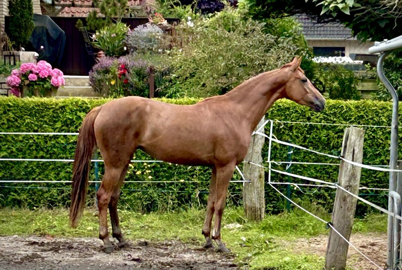 Zum Verkauf steht eine bildschöne, 4-jährige Hannoveraner Stute mit besten Voraussetzungen für eine erfolgreiche Zukunft im Sport, Freizeit oder in der Zucht. Diese junge Dame überzeugt durch drei gute Grundgangarten, ein aktives Hinterbein sowie viel Elastizität und Schwung. Sie präsentiert sich stets lernwillig, nervenstark und mit einer positiven Arbeitseinstellung. Sie macht ein tolles Freispringen mit viel Vorsicht und Vermögen. Aktuell befindet sie sich in professioneller Ausbildung und entwickelt sich täglich weiter. Röntgenbilder ohne Befund liegen vor und können bei ernsthaftem Interesse eingesehen werden. Ein Kennenlernen ist nach Absprache jeder Zeit möglich.