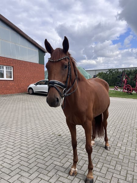 „Viva“ ist eine vierjährige Stute von Vivaldos aus einer Dancier Mutter. Mit einem starken Charakter und genügen Power ausgestattet zeigt Viva sich in der Arbeit motiviert und lernt sehr schnell. Sie ist seit Anfang des Jahres unter dem Sattel und beherrscht die Lektionen für eine Dressurpferde A bereits sicher. Dazu bietet sie trotz ihres jungen Alters bereits erste Ansätze für L Lektionen, wie den Außengalopp, an und zeigt Potenzial für höhere Lektionen. Erste Sprünge mit Reiter hat sie auch bereits gemacht, wird im Springen von uns aber auf Grund des Reiters nicht weiter gefördert. Unter dem Reiter ist Viva ein sensibles aber dennoch leichtrittiges Pferd, welches mit viel Ruhe korrekt ausgebildet und geritten ist. Trotz dem ausreichendem Go nach vorne ist Viva ein recht entspanntes, unerschrockenes und cooles Pferd. Sie ist gut erzogen und dementsprechend im Umgang unkompliziert und respektvoll dem Menschen gegenüber. Ein Video kann auf Anfrage gerne versendet werden. Bei weiteren Fragen oder Interesse einfach telefonisch oder per WhatsApp unter 01525 6448041 oder 04163 7706 melden.
