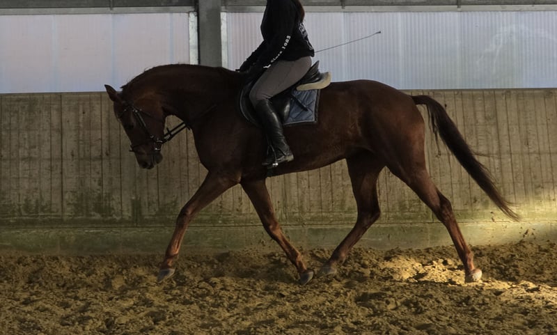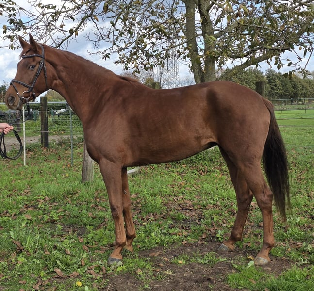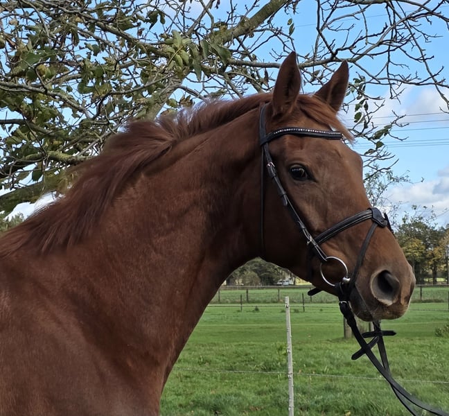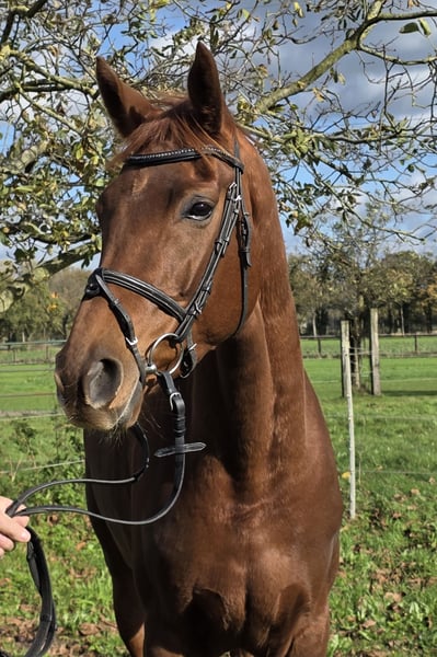 Fiola is een merrie van ongeveer 1,65 m hoog, een Hannoveraanse met uitstekende stamboekpapieren. Ze komt rechtstreeks van de fokker. Ze heeft lange tijd in een kudde mogen opgroeien en is dit jaar voorzichtig aangezadeld. Fiola is niet alleen een dressuurpaard, maar springt ook geweldig en met plezier. Een echte allrounder. :-) In de dressuur zit ze op het niveau van Dressuurpaarden A en ze springt ook al onder het zadel. Ze is een paard met veel potentieel en een zeer rustige geest. Onder het zadel heeft ze nog nooit een fout gemaakt. Haar gangwerk is bovengemiddeld en ze is zeer rijdig. Ook in de omgang is ze heel lief. Actuele röntgenfoto's zonder afwijkingen zijn aanwezig. Voor meer informatie, bellen wij graag op: 0177/2721831. Bij interesse in video's, stuur ons gerust direct een bericht via WhatsApp!!!
