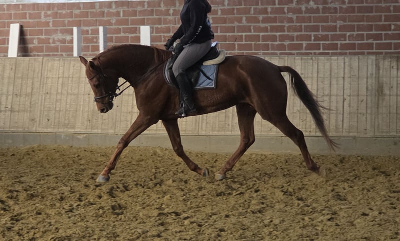 Fiola is a approximately 16.1 hh Hanoverian mare with excellent pedigree, coming directly from the breeder. She has had the opportunity to grow up peacefully in a herd and has been gently backed this year. Fiola is not only a dressage horse but also enjoys jumping and excels in both disciplines. A true all-rounder! :-) In dressage, she competes at the A-level and is already jumping under saddle. She is a horse with great potential and a very clear mind. She has never taken a wrong step while ridden. Her gaits are above average, and she is extremely rideable. She is also very sweet and gentle in handling. Current X-rays are available without any findings. For more information, we look forward to your call at: 0177/2721831. If you're interested in videos, please contact us directly via WhatsApp!