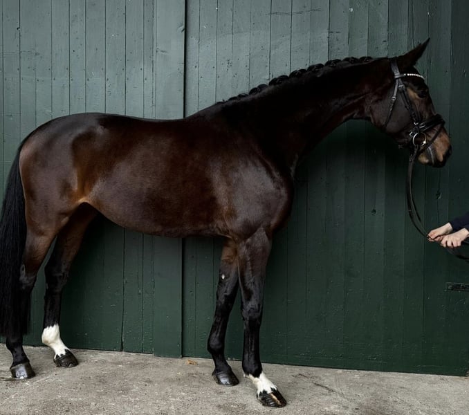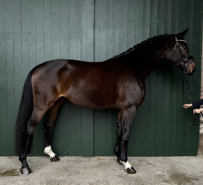 Elegant Hanoverian mare for sale – ideal for dressage! We are offering a beautiful dark bay Hanoverian mare, born in 2021. Standing at 16.1 hh, she has a compact and ideal size. She is well-suited for dressage and demonstrates great talent and willingness to learn. This talented young mare impresses with her elegant appearance, friendly demeanor, and promising movement. She has been carefully trained and is in good riding condition. If you are interested or have any questions, please feel free to contact me. Viewings and test rides can be arranged by appointment. Contact me for more information!