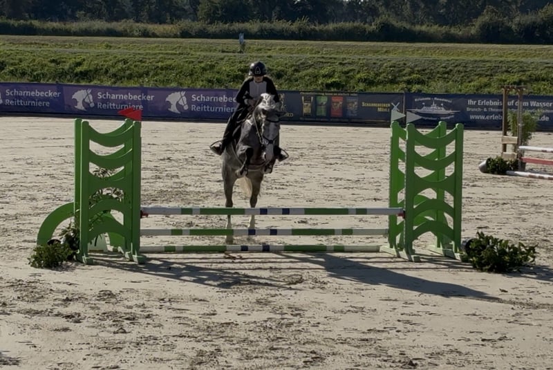 Zum Verkauf steht diese 5-jährige, bildhübsche Stute, die mit ihrem tollen Charakter und ihrem Talenten begeistert. Sie ist sowohl im Umgang als auch unter dem Sattel absolut zuverlässig und eignet sich perfekt für einen Reiter der ein junges Pferd zum ausbilden sucht– sei es im Gelände, auf Turnieren oder sogar für Spontanaktionen ohne Sattel auf dem Stoppelfeld mit ihr ist alles möglich. Die Stute ist sehr lieb im Umgang, sowohl im Stall als auch beim reiten. Erste Turniererfahrungen hat sie bereits gesammelt und ist auf Springpferde A Niveau bis zu Noten von 8,1 erfolgreich platziert. Aktuell wird sie von einer Amateurin geritten und gesprungen und auf Turnier vorgestellt. Come to me ist ein echter Allrounder, die sowohl im Springen, in der täglichen Arbeit als auch im Gelände Freude bereitet. Nur in beste Hände abzugeben!