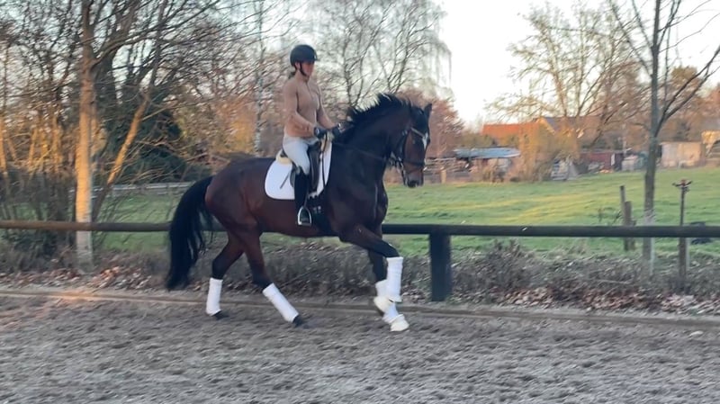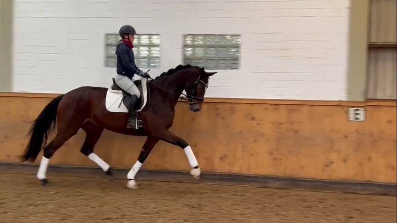 Se ofrece en venta esta hermosa y longilínea yegua de 4 años, por Vivino, de madre Sandro Hit/Fabriano. Esta potra de gran tamaño y movimiento destacado impresiona, además de por sus cualidades por encima del promedio en sus pasos básicos, por su alta disposición a la actuación y su excelente facilidad de movimiento. Con una altura de 1,74 m, es adecuada tanto para jinetes de mayor tamaño como para damas. También es muy interesante para la reproducción, gracias a su linaje de yeguas de alto rendimiento. De su madre han salido varios campeones de Hannover y finalistas de BuCha. ¡Se puede visitar y montar en prueba en cualquier momento! Si está interesado o tiene alguna pregunta, no dude en contactarme. Tel. +49 170 4852207 *Venta en comisión*