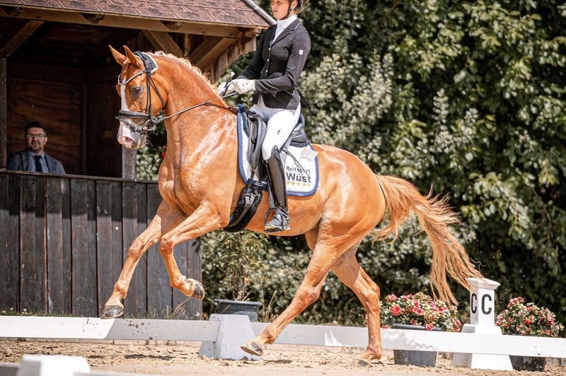 🌟 Nachwuchsstute mit Perspektive 🌟 Diese ausdrucksstarke Fuchsstute vereint Kraft, Eleganz und hervorragende Rittigkeit – ein echtes Talent für den Dressursport. Bereits in Dressurpferde A & L platziert und sicher auf dem Weg Richtung Dressurpferde M, zeigt sie ein modernes Bewegungsbild, elastische Grundgangarten und viel Leistungsbereitschaft. Trotz ihrer Power ist sie brav, klar im Kopf und angenehm zu reiten – ein echtes Ausbildungspferd für den großen Sport. Alles weitere gerne auf Anfrage! 📍 Standort: Münster (NRW)