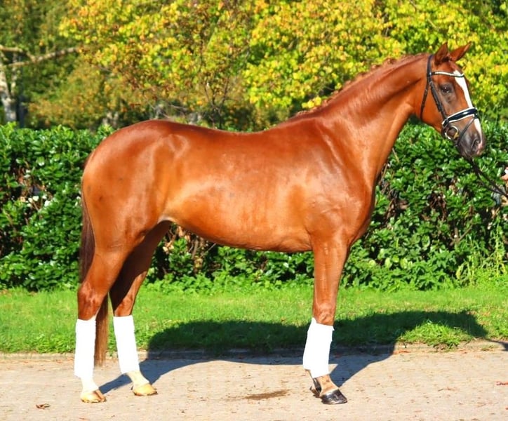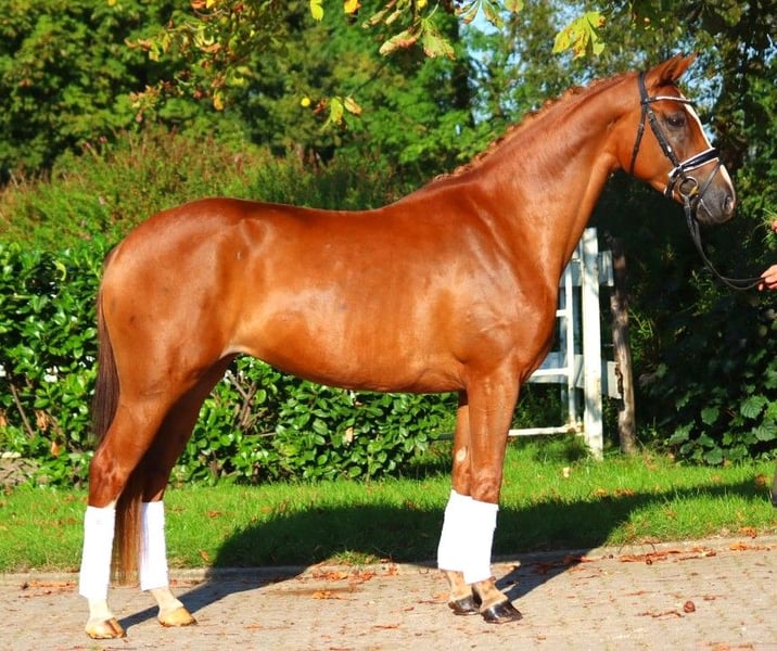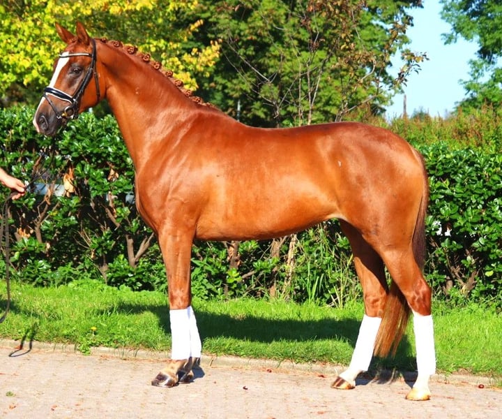 Jolie jument hanovrienne primée de 5 ans, fille de Benicio x Fürst Romancier, avec trois très bonnes allures de base. Elle est très gentille au quotidien et possède une excellente montabilité. Cela a pu être prouvé lors de son test de performance des juments, où elle a reçu des notes de 8,0 et plus pour les allures de base et la montabilité. Le pas a même été noté à 9,0. Vendue directement par l'éleveur. Prix hors TVA. Les demandes doivent être faites uniquement par téléphone, les e-mails ne seront pas répondus.