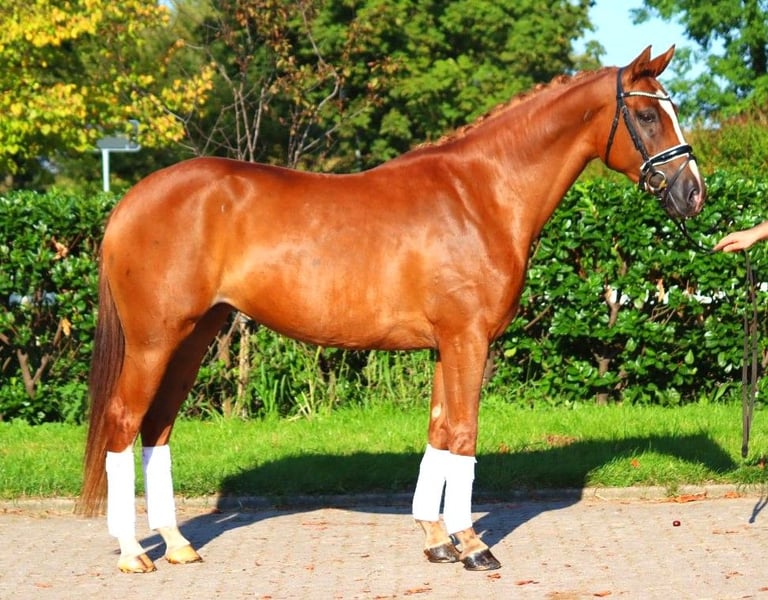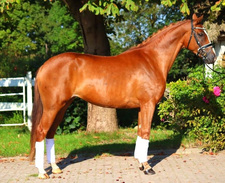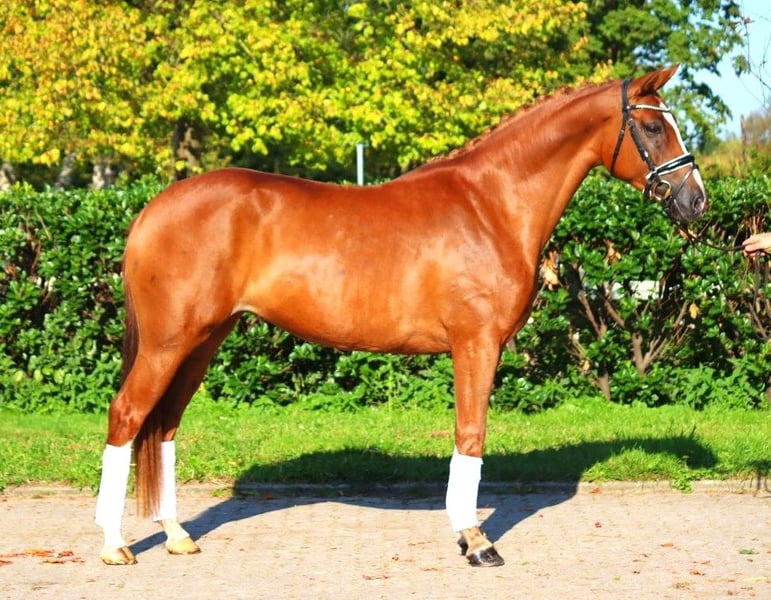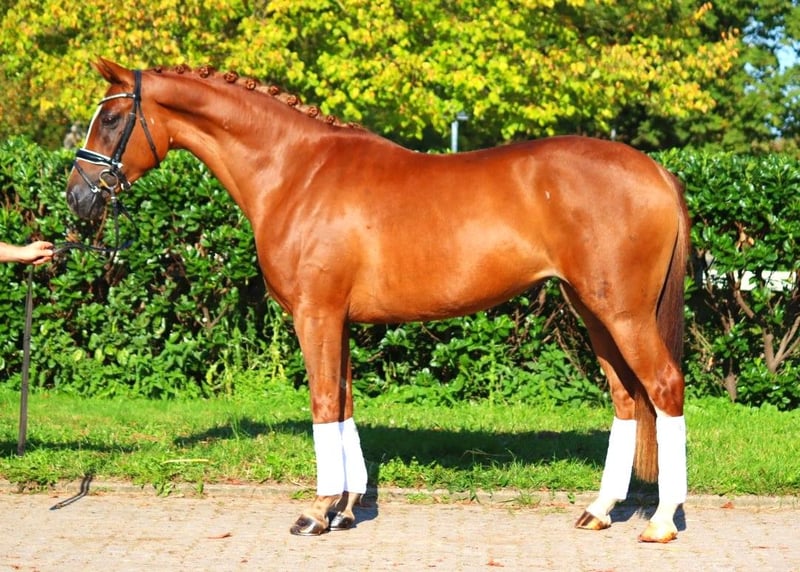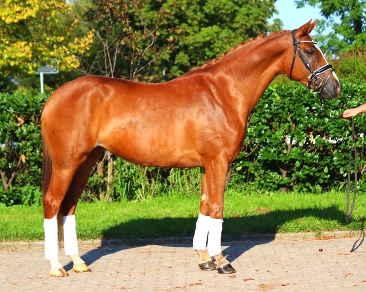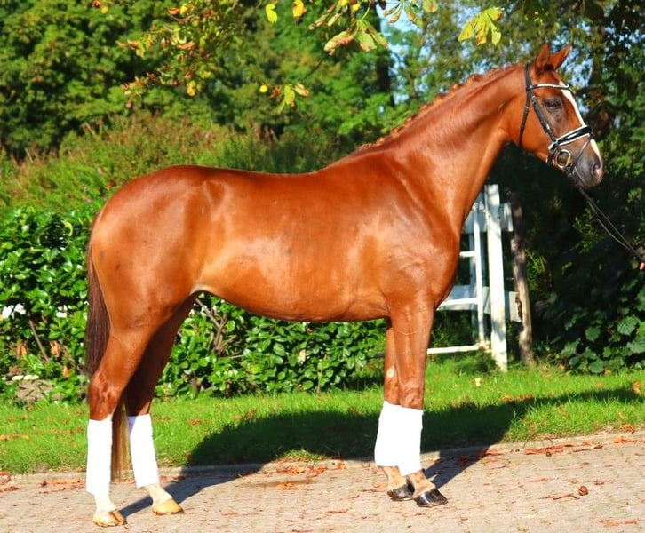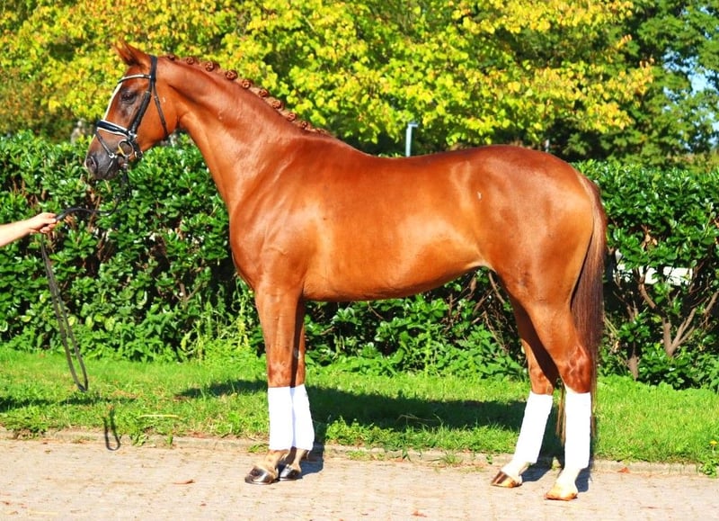 Sympathische 5 jährige Hannoveraner Prämienstute von Benicio x Fürst Romancier, mit drei sehr guten Grundgangarten. Sie ist super brav im Umgang und mit einer tollen Rittigkeit ausgestattet. Dies konnte sie anhand ihrer Stutenleistungsprüfung unter Beweis stellen, wo sie für Grundgangarten und Rittigkeit durchweg Noten von 8,0 und besser erhielt. Der Schritt wurde sogar mit einer 9,0 bedacht. Direkt vom Züchter zu verkaufen. Preis zzgl. Mwst. Anfragen nur telefonisch, E-Mails werden nicht beantwortet.