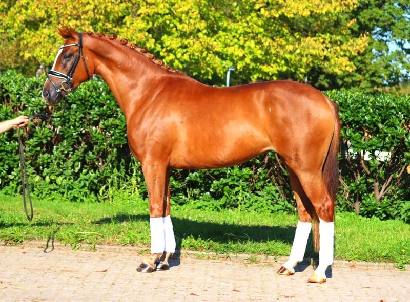 Affascinante puledra Hannoverana di 5 anni, con prestazioni di stallone di Benicio e Fürst Romancier, dotata di tre ottimi giri fondamentali. È molto docile nel maneggio e presenta un’eccellente capacità di cavalcata. Ha dimostrato le sue qualità durante la prova di prestazione della fattrice, ottenendo valutazioni di 8,0 o superiori in tutti i parametri, con il passo valutato addirittura 9,0. Viene venduta direttamente dal allevatore. Prezzo più IVA. Richieste solo telefoniche, le email non verranno risposte.