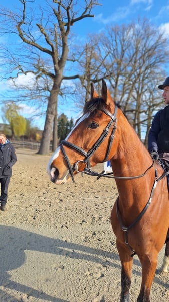 Nuestra Franzi es una yegua elegante y deportiva, ideal para el deporte amateur, aunque no es una yegua que se deje dominar fácilmente. Con solo 4 años y ya montada, todavía está en plena formación para convertirse en una yegua de salto. Gracias a sus tres excelentes movimientos naturales y con la adecuada preparación, también podría ser adecuada para algunas tareas en doma clásica. Su carácter algo tímido y reservado requiere algo de tiempo en entornos desconocidos para que realmente se adapte. Sin embargo, siempre es tranquila y no presenta ningún mal comportamiento. Ya ha participado en sus primeras competiciones, es tranquila en el remolque y en la herrería, y ahora busca un nuevo hogar.