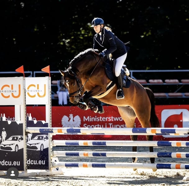 Experienced competition mare, ideal for a child or junior rider. Very brave, 7 years old, suitable for introduction to sport. Easy to ride, always on the other side of the obstacle, ambitious with good sporting results. Competing in the P class, paid placement. Well-behaved during grooming, farrier visits, and transport. New environments do not bother her. Excellent pedigree: Conthargos x Quinta B https://www.horsetelex.com/horses/pedigree/2752075/contharga-b Both parents proven at high levels of sport. In the same owner for 3 years. Current TUV available.