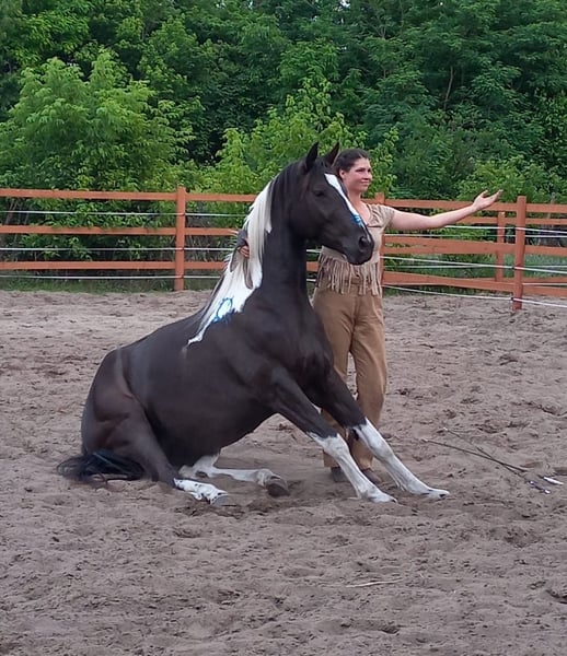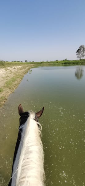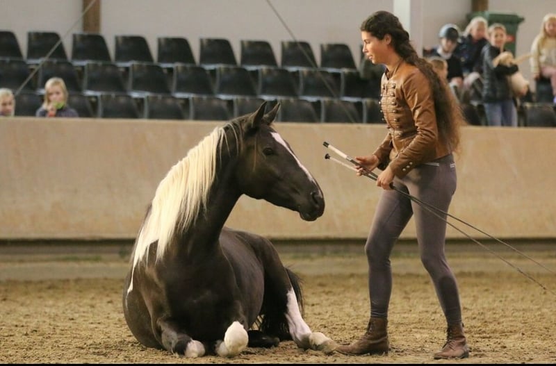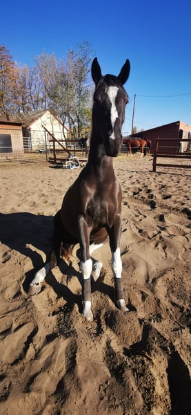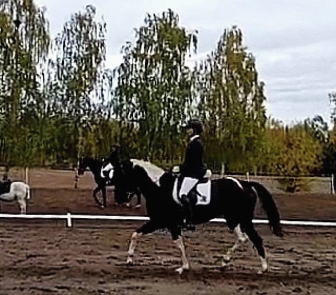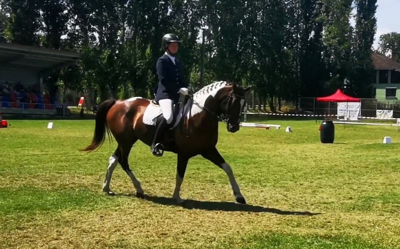 Hallo Leute, ich bin "My little Magic", aber ihr dürft mich Pinti nennen! Ich bin eine 6jährige hübsche, junge Dame und suche eine neue Partnerin in meinem Sattel. Seit Fohlen an lebe ich bei meiner aktuellen Besitzerin, die mich schonend, mit viel Feingeühl und Fachkenntnis ausgebildet und auf die vielen Seiten des Pferdelebens in der großen weiten Welt vorbereitet hat. Nun bin ich so weit, die "Kinderstube" zu verlassen und suche dafür den passenden Menschen. Damit ihr wisst, ob ihr zu mir passt, erzähle ich euch einfach über mich. Meine Mama ist eine Dressur-Hannoveranerstute die auf Wenzel zurück geht. Meine Besitzerin sagt, da habe ich meine tollen, federnden Gänge her. Mein Papa ist ein Paint Horse, von dem ich die gescheckte Farbe und auch mein Gemüt der "coolen Socke" geerbt habe. Ich liebe den Menschen und freue mich, viel Zeit mit dir zu verbringen. Ich kann ganz viele tolle Tricks und begrüße dich gerne jeden Morgen mit einer Verbeugung. Danach gerne auch ein paar Küsschen. Da frage ich aber, ob du das magst - ich habe auch gelernt, dass nicht jeder das möchte und das respektiere ich natürlich auch! Zuhause lebe ich im Offenstall in einer Mädelsgruppe und genieße im Sommer die Weide. Wenn du mich rufst, komme ich immer gerne - wenn ich mir den Bauch nicht zu voll gefressen habe, auch im vollen Galopp wie im Film. In meiner Kinderzeit habe ich die Welt immer mit einem erfahrenen Pferd erkunden dürfen und gelernt, dass es nichts gibt, wovor ich mich fürchten müsste. Da wir hier auch manchmal junge oder erschrockene Pferde habe nimmt meine Besitzerin die gerne auf unsere Ausflüge mit, damit ich denen zeigen kann, dass Verkehr (auch Trecker, Erntemaschinen), plötzlich aufspringende Wildtiere, Gräben, Hänge oder ein See nichts ist, wovor man Angst haben muss. Auch wenn die anderen Pferde mal Umherspringen, lass ich mich davon nicht beeindrucken. Dieses Jahr war ich sogar bei einem ganz wichtigen Besuch vor dem Parlament. Da ging es durch die Innenstadt, vorbei an Straßenbahnen, Bussen, Schiffen und quer durch die Fußgängerzone. Apropos See, ich liebe es im Sommer dort schwimmen zu gehen, ich bin ein echtes Seepferdchen. Das ist nach einem langen und gerne auch mal schnellen Ausritt genau das Richtige. Wenn du mit mir am langen Zügel durchs Gelände bummeln möchtst, ist das super, aber über einen flotten Galopp, egal ob alleine oder in der Gruppe, freue ich mich immer. Ich habe nämlich eine super Grundkondition. So nun aber zu dem, was mich und den Menschen den ich Suche besonders macht: Dass ich gut aussehend, wohlerzogen und charmant bin, brauche ich nicht nochmal zu betonen. Ich habe gute Nerven, bin aber keine Schalftablette. Ich bin jung und dynamisch mit einem butterweichen Ganz zum sitzen. Traben ist wie auf Wölkchen sitzen sagt meine Reiterin =D Wenn auch mal fremde Reiter auf meinem Rücken sitzen, gebe ich mir immer größte Mühe zu verstehen, was sie von mir möchten. Was mich aber wirklich besonders macht, ist was ich alles kann und gelernt habe. Da sagen alle, es gibt kein zweites Pferd, dass so vielseitig ist. Das macht mich natürlich besonders stolz! Als ich zu jung zum reiten war, habe ich immer den anderen Pferden bei der Freiheitsdressur zugesehen und wenn ich zeigleich auf dem Platz spielen durfte, habe ich mich immer mit eingereiht. Daher waren meine ersten Auswärts-Ausflüge Showauftritte mit meiner Herde. Ich war so mutig, dass ich mich sogar vor meinem ersten Publikum direkt hingelegt habe. Die Leute finden mich klasse und ich liebe es, vor Publikum zu stehen! Da habe ich viele tolle Erinnerungen. Licht, Show, Action ist mein Motto. So habe ich die erste Turnierluft geschnuppert, bevor ich mit 4 überhaupt unter den Sattel kam. Da ich nicht angeben wollte, bevor ihr mich ein bisschen kennt, erzähle ich euch jetzt, wo ich in den letzten 12 Monaten alles Schleifen und Pokale gewonnen habe: Dressur: mehrere Siege in A, L und Dressurpferde L, fliegende Wechsel kann ich schon und freue mich nächstes Jahr auf meine ersten Starts in M. Working Equitation: A, L* & L** (fliegende Wechsel im Trailparcours) & Garrocha Arbeit Western: Vize auf dem Finale der Landesmeisterschaft im Trail; Sieg Trail in Hand und Cowboy Challenge (Rinder treiben, Lasso werfen etc.) Rinder: Rinderarbeit einzeln und Team Penning (Kühe finde ich eine super Sache. Das muss mir keiner was erklären, ich weiß was ich zu tun habe!) Springen: mein erstes Parcoursspringen habe ich im Stil direkt gewonnen. Es war zwar nur ein E, aber meine Besitzerin meinte, das würde für den Anfang reichen. Ich fand die Sprünge schon fast zu einfach, aber ich habe mich gut konzentriert und mit viel Übersicht den Parcours bewältigt. Vielseitigkeit: da wir schon bei einer vielseitigen Ausbildung sind, darf natürlich die Vielseitigkeit bzw das Geländespringen nicht fehlen. Auch da habe ich mich erfolgreich bewährt. Aus meinem Alltag bei den Ausritten stehen wir häufig vor größeren Herausforderungen, was Wasser, Gräben und Wälle angeht. Naja auf jeden Fall habe ich auch da direkt eine super Figur gemacht. Und welches Pferd kann von sich schon behaupten, dass es in so vielen Disziplinen Erfolg hat?! Das Beste ist, es macht mir auch alles total viel Spaß! Ganz stolz bin ich, dass ich auch die Arbeit der Hohen Schule lerne. So kenne ich sogar Pilaren. Dort soll ich auch bald piaffieren. Piaffe und Passage kann ich schon so und auch schon mit dir im Sattel. Das mache ich total gerne und auf ganz leichte Hilfen. Da heißt es hinsetzten und genießen. Sobald du mir das Zeichen gibst, gehen wir im Trab oder geregelten Schritt weiter. Also, wenn du jemand bist, der mit mir die ganze Vielfalt der Pferdewelt erleben möchtest, bist du genau das wonach ich suche! Und wenn du dir bei dem ein oder anderen auch unsicher bist, kein Problem, ich passe auf dich auf und nehme dich mit. Außerdem bin ich ja so vielseitig, da finden wir was, was uns beiden Spaß macht! Ausritte. Zirzensi