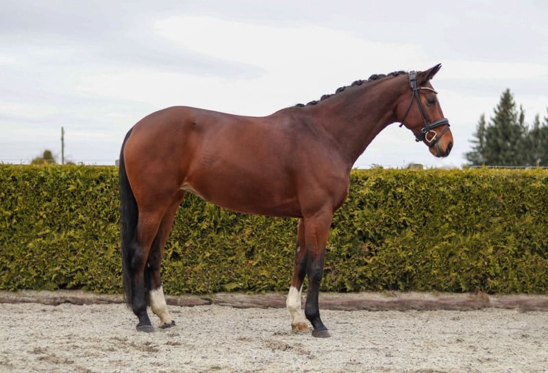 Diese wunderschöne braune Stute wurde im Jahr 2018 geboren und beeindruckt durch ihre ansprechende Erscheinung und ihr angenehmes Temperament. Mit einem Stockmaß von 166 cm bietet sie die perfekte Größe als Damen- und Juniorenreitpferd Sie ist solide ausgebildet bis Klasse L und Floor hat Platzierungen in A-Dressur. Im Trab zeigt sich Floor stets taktvoll und mit viel Gleichmaß , Im Schritt verfügt sie über viel Gleichmaß. Von jungendlicher Amazone zwei Jahre geritten worden auch im Gelände. Floor war stets gesund und wird aus Zeitmangel verkauft Bei Interesse stehe ich gerne für weitere Informationen und eine Besichtigung zur Verfügung.
