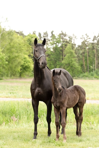 Doralie is a large-framed black mare that has been used for breeding so far. She has produced three excellent offspring with the stallions Iron, Escanto, and Seattle, who presented themselves as strong movers and of good type. She herself was backed as a three-year-old and is now being re-trained after weaning this year's foal, showing herself to be willing to learn and cooperative. From the maternal line, there are highly successful competition horses in the disciplines of dressage and eventing that have been successful with amateurs. Due to a radiological finding in a young horse that has completely healed, this mare is now being sold well below her value into appreciative hands. Currently, there is no video material available.