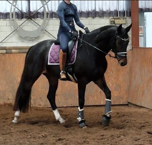 Fantastyczna 6-letnia klacz hanowerska – o linii krwi San Amour × Sandro Hit Ta wyjątkowa 6-letnia klacz hanowerska to prawdziwa perełka: zrównoważona, inteligentna i niezwykle łatwa w obsłudze, z pewnością zachwyci jeźdźca na każdym poziomie. Nie tylko prezentuje się elegancko, ale również jej pochodzenie jest warte podkreślenia: San Amour, Sandro Hit, Sandro Song, Bretone i Brentano II gwarantują doskonały ruch, elastyczną grzbiet i atletyczną budowę ciała. Idealna dla amatorów: niezawodna, spokojna natura, wyrozumiała i łatwa w jeździe. Ta klacz to prawdziwy „niezłomny diament”, który może być diamentem i wiernym towarzyszem na całe życie – zarówno do dalszego szkolenia, startów, jak i rekreacyjnej jazdy.