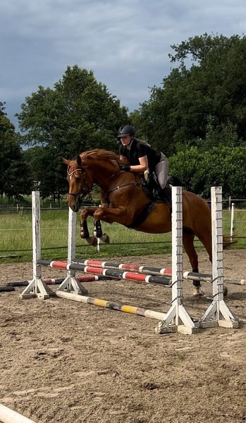 Te koop direct van de fokker: deze prachtige Hannoveraanse vosmerrie van Zinedream, geboren in mei 2019, met een moeder afstammend van Earl X Wildfang. Ze is laat al voorzichtig bereden en heeft haar eerste sprongen en buitenritten gemaakt. Helaas heb ik haar vanwege gebrek aan tijd nog niet verder kunnen opleiden. Vanwege haar trainingsniveau wordt ze niet als beginnerspaard verkocht, maar ze heeft zeker het potentieel. Ze is fijn te rijden aan de hand en zeer vriendelijk in de omgang. Ze vindt het heerlijk als er kinderen aanwezig zijn, kent honden, koeien en andere dieren, en is ook bekend met tractoren en quad's, hoewel ze daar niet zo dol op is. Ze staat momenteel overdag in de paddock en 's nachts in de stal. Vanwege haar beperkte opleiding en een oppervlakkige verwonding aan haar voorbeen, die nog verdere verzorging en aandacht vereist, maar volgens de dierenarts later geen problemen meer zou moeten geven, wordt ze onder de marktwaarde verkocht. Een springzadel dat in oktober is aangepast, evenals ander toebehoren, kan ook worden meegekocht. Momenteel is de merrie door haar nog genezende verwonding niet in training, dus proefritten zijn niet mogelijk! Wel zijn er video's van haar met ruiter uit vorig jaar beschikbaar, die bij interesse kunnen worden toegestuurd. In de advertentie vindt u ook een video met verschillende sequences in de vrije menning (de sneeuwbeelden zijn recent uit januari 2024). Ze is bij ons op de boerderij opgegroeid als eerste eigen veulen, maar ik kan haar vanwege persoonlijke redenen niet houden. Ik zoek daarom een liefdevol thuis waar ze een taak krijgt. Met het juiste training zal ze zeker mooie wedstrijden kunnen rijden, maar ik verkoop haar als recreatiepaard. Bij serieuze interesse hoor ik graag van u.