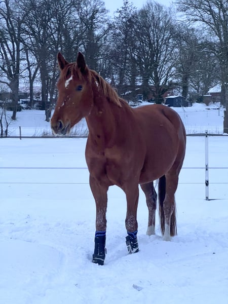 For sale directly from the breeder: this beautiful Hanoverian chestnut mare by Zinedream out of an Earl x Wildfang dam, born in May 2019. She was gently backed at a late age and has completed her first jumps and trail rides. Unfortunately, due to my limited time, she has not been further developed. Given her current training level, she is not suitable as an beginner's horse but definitely has the potential. She is very responsive and easy to handle, and she is extremely gentle in her manner. She loves being around children, is familiar with dogs, cows, and other animals, and is accustomed to tractors and quads nearby, although she does not particularly like them. She currently stays in an open stall during the day and in a box at night. Due to her limited training and a superficial injury to her front leg that still requires care and attention, she is being sold well below value. A jumping saddle adjusted in October and additional tack can also be purchased. At the moment, she is not in training due to her ongoing recovery, so trial riding is not possible. However, videos with a rider from last year are available and can be sent upon request. There is also a video showing various sequences in turnout (the latest ones are from January 2026, in the snow). She grew up as our first foal on the farm, but I am unable to keep her for personal reasons. I am looking for a loving home where she can have a meaningful task. With proper training, she will certainly be able to compete at shows; however, I am selling her as a leisure horse. If you are genuinely interested, please feel free to contact me.