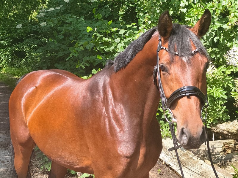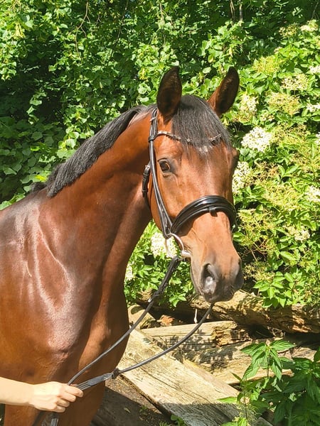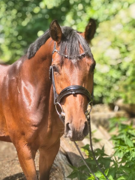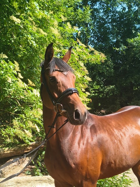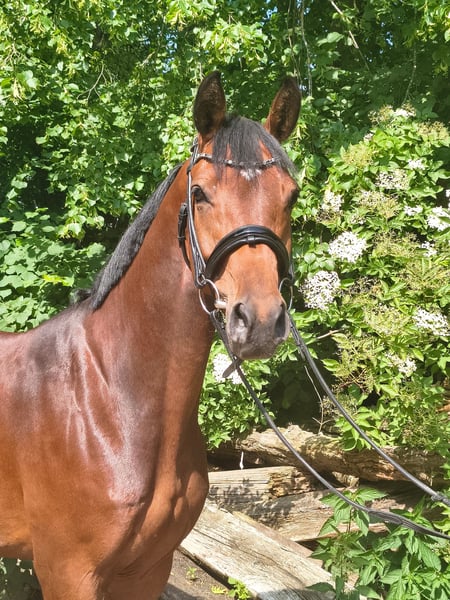 Elegant Hanoverian mare of Arab type seeking her person! Carlitta is a highly charming, blood-type mare in a small size. She is confidently ridden in all three gaits and responds delicately to rider aids. In free jumping, she demonstrates great talent, excellent manners, and quick reflexes. Under saddle, she is familiar with small jumps but is still in the early stages of training. She is ideal for ambitious young riders or small adults with some experience with young horses. Additionally, she knows ground work and is very trainable, reacting subtly to human signals. This beautiful bay mare was saddled late due to time constraints and has not yet been publicly presented. Carlitta is familiar with farm machinery, cows, chickens, and dogs. She is curious and interested in her environment. Her dam received two scores of "10" for her manners and ability in show jumping during her performance test. A half-brother is highly successful in eventing in Great Britain, placed up to 4*, and notably victorious in the Boekelo Nations Cup 2025. Carlitta is available directly from the breeder. She grew up on extensive marsh pastures in a large herd and is well socialized. Please contact me for further information and to arrange a viewing. Feel free to reach out to learn more about this promising horse!