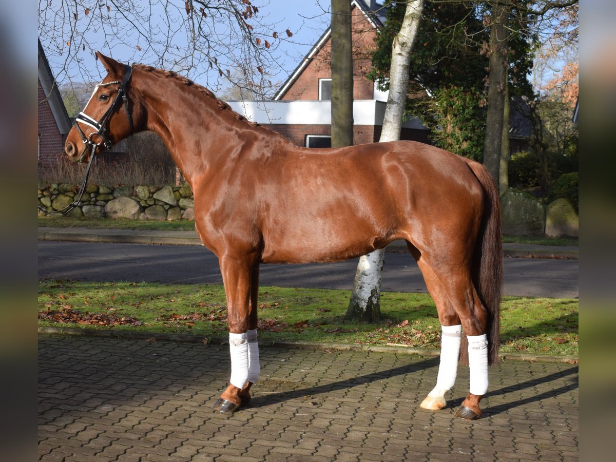 Hübsche Stute, die sich unkompliziert und gelassen präsentiert. Sie ist sehr brav zu reiten und kennt auch Gelände. Dazu ist sie nervenstark und von jedermann zu reiten. Mit ihrer edlen Erscheinung und Bewegungungen in guter Qualität ist sie ein echter Hingucker im Viereck. Ein Pferd zum Losreiten und Schleifen sammeln! Mehr Infos finden Sie auf unserer Homepage. Probereiten jederzeit nach Absprache möglich.