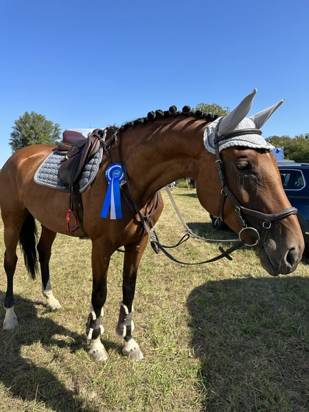 For sale is an 8-year-old Hanoverian mare with an impressive pedigree: Light My Fire x Lancer III. She was bred from a sport-oriented jumping line and has already placed in the show jumping arena. However, due to a lack of self-confidence, she currently shows uncertainty when jumping. With a height of 1.74 m, she has a strong presence and impresses with her beautiful basic gaits. Under the right rider, she is pleasant to ride, attentive, and easy to handle. However, she is not a beginner's horse and requires a sensitive, confident person who understands her and can provide clear, fair guidance. ✨ What she offers: ✔️ Hanoverian mare, 8 years old ✔️ Pedigree: Light My Fire x Lancer III ✔️ Height: 1.74 m ✔️ Jumping ability ✔️ Currently challenging in the show jumping arena – therefore suitable as a leisure horse ✔️ Well-behaved in the field, good with farrier and loading ✔️ No known health issues She is familiar with the indoor arena, outdoor arena, and trails, goes out alone, and is always polite to handle. With patience and trust, she can develop into a great partner for ambitious leisure riders with experience. 📌 No urgent sale – quality over price. Only to be sold to experienced, loving hands.