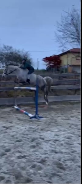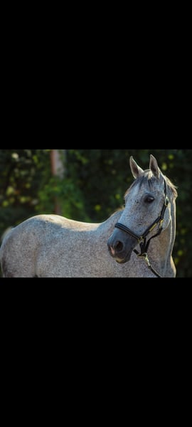 Verkauft wird eine 9 jährige Stute mit Top-Springabstammung - ein kleiner Rohdiamant zum selber weiter schleifen. Ende 4-jährig angeritten, 5-jährig lief sie 2 Turniere und sprang Zuhause Einzelsprünge von 1,30 m, wurde dann von einer Freizeitreiterin gekauft und nicht weiter gefördert bzw gearbeitet. Nun ist sie seit einem Jahr in meinem Besitz und wird täglich gearbeitet. Seit dem Sommer ist sie im Profiberitt, wo sie in der Dressur weiter gefördert wurde/ wird, sie zeigt auch in der Dressur ihr starkes Potenzial und eine tolle Bewegung. Nun wird sie langsam wieder mit Ruhe angesprungen. Sie zeigt sich am Sprung absolut mutig, braucht aber aufgrund des Ausbildungsstandes einen Reiter mit etwas Erfahrung und einer ruhigen Hand. Sie hat auf alle Fälle das Herz und den Ehrgeiz ganz vorne mit zu laufen, da sie überhaupt nicht umweltorientiert ist oder sich an anderen Pferden orientiert bzw dringend die Gesellschaft benötigt und noch dazu ist sie unglaublich geschickt. Schimmeltypisch ist sie absolut vorsichtig am Sprung, sie hat noch nie eine Stange nur berührt und will unbedingt auf die andere Seite. Frische Röntgen von den Beinen und Rücken sind vorhanden und waren unauffällig, ebenfalls wurde sie auf alle Arten von Pssm getestet und diese waren ebenfalls negativ, gerne kann auf Kosten des Käufers eine AKU vorgenommen werden. Sie ist aktuell nicht beschlagen, kennt Box mit täglichem Weidegang und Offenstallhaltung. Probereiten ist selbstverständlich möglich, allerdings verlangen wir dafür 30,-€, um Reittourismus vorzubeugen, diesen Betrag ziehen wir bei Kauf gerne wieder ab.