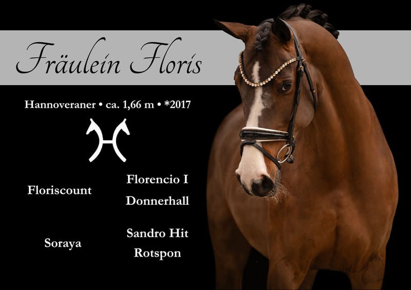 Liebe Interessenten, Ausführliche Videos versende ich gerne auf Anfrage per WhatsApp 00491713438949 Für Terminvereinbarungen Probereiten senden Sie mir bitte eine WhatsApp. Für weitere Fragen bin ich tagsüber per WhatsApp erreichbar, telefonisch erreichen Sie mich am Besten zwischen 16 und 19 Uhr. Ich freue mich auf eine Kontaktaufnahme www.angelina-devittorio.de ⭐️Fräulein Floris⭐️ • Alter: 9 Jahre (2017) Größe: 1,67 m Abstammung: Floriscount x Sandro Hit Ausbildungsstand: DressurpferdeA-Niveau, L Lektionen begonnen • AKU: gute Röntgenbilder vorhanden Wunderschöne 9-jährige Floriscount-Tochter mit Top-Charakter zu verkaufen Zum Verkauf steht eine wunderschöne, 9-jährige Tochter des Floriscount mit drei sehr guten Grundgangarten und einer besonders ansprechenden Optik. Frieda überzeugt nicht nur durch ihre Qualität, sondern vor allem durch ihren außergewöhnlich lieben Charakter. Sie ist stets bemüht zu gefallen, absolut brav im Umgang und dadurch ideal für Amateurreiter geeignet. Im täglichen Handling zeigt sie sich kopfklar, unkompliziert und bereitet jeden Tag große Freude. Die Stute ist solide auf A/L-Niveau ausgebildet und konnte als Fünfjährige Dressurpferdeprüfungen gewinnen sowie mehrfach hoch platziert werden. Aufgrund eines Befundes im Halsbereich (Formveränderung der Facettengelenke) wird sie nicht für den großen Dressursport verkauft. Sie eignet sich jedoch hervorragend für einen ambitionierten Freizeitreiter, der ein zuverlässiges und talentiertes Pferd für den A- und L-Bereich sucht. Im Alltag ist sie dadurch nicht maßgeblich eingeschränkt, wird jedoch kein Pferd für den großen Sport sein. Eine absolute Traumstute mit toller Abstammung, die zudem auch für die Zucht äußerst interessant ist. ⚜️Tel: 0171-3438949 ⚜️a.devittorio@web.de ⚜️www.angelina-devittorio.de / https://www.ehorses.de/angelinadevittorio Facebook und Instagram Angelina De Vittorio Videos bitte per WhatsApp 00491713438949