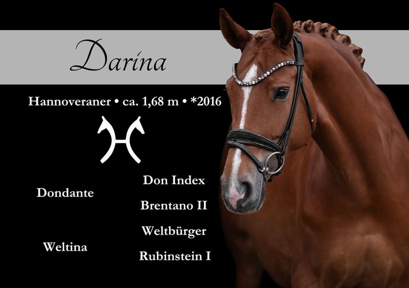 Liebe Interessenten, Für Terminvereinbarungen Probereiten senden Sie mir bitte eine WhatsApp. Für weitere Fragen bin ich tagsüber per WhatsApp erreichbar, telefonisch erreichen Sie mich am Besten zwischen 16 und 19 Uhr. Ich freue mich auf eine Kontaktaufnahme www.angelina-devittorio.de ⭐️Darina⭐️ Alter: 9 Jahre (2016) Größe: ca 1,68 m Abstammung: Dondante x Weltbürger Ausbildungsstand: A Dressur , Freizeit AKU: Gute AKU incl Röntgenbilder vorhanden Zum Verkauf steht eine bezaubernde, super schöne Fuchsstute von Dondante, die mit drei tollen Grundgangarten überzeugt. Besonders hervorzuheben sind ihr sehr guter Schritt und ihreTrabmechanik mit aktivem Hinterbein. Diese Stute hat einen liebenswerten, menschenbezogenen Charakter und zeigt sich im täglichen Umgang stets kopfklar, freundlich und unkompliziert. Sie möchte ihrem Menschen immer gefallen und total Menschenbezogen. Unter dem Sattel benötigt sie einen etwas erfahreneren Reiter, da sie in der Anlehnung manchmal etwas stärker sein kann . Niemals böse oder schwierig, jedoch nicht für komplette Anfänger oder ängstliche/unsichere Reiter geeignet. Für ambitionierte Amateure ab gutem A-Niveau ist sie jedoch ideal! Bisher wurde sie freizeitmäßig geritten und ist auf A-Niveau ausgebildet, zeigt aber viel Potenzial für eine weiterführende Ausbildung. Mit Förderung Potential für mehr ! Eine tolle, charakterstarke Stute mit viel Herz und Qualität – und das zu einem sehr interessanten Preis.