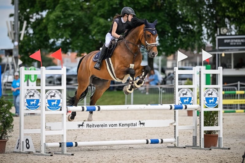 With a heavy heart, we are parting with our Semper Fi, who has been a great teacher for our daughter. We now have three horses in the stable, and unfortunately, one is too many. Our Semper Fi is a horse that fulfills many expectations. He has brought us a lot of joy and has been to many competitions with our daughter. Semper Fi has great potential and has been treated like a true sport horse with us. Our horses had a clear weekly program, and when participating in competitions, we always made sure to give them rest. An osteopath came four times a year to treat them. Besides training, he was in the lungeing arena or in the pasture daily. The feeding was also tailored to performance and recovery to provide the best care for the horse. Semper Fi was in professional training once a week. Before he came to us, Semper Fi was classified up to 1.20m. Our daughter has jumped up to 1.00m. We wish Semper Fi a home where he receives the same love and passion for him and equestrian sports. He is a true friend but can also be a bit headstrong. Semper Fi is not a beginner's horse, but with a Level Brevet, you will find joy in him. He will be a good teacher.