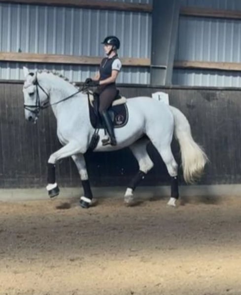 Easily doing all M-level dressage movements. She is kind, easy to handle, and very comfortable to ride. She is used to hacking in the forest, competitions, and both indoor and outdoor training. She’s the perfect schoolmaster whether you’re a junior rider transitioning from pony to horse or looking for a luxury leisure partner. For more info and contact info on seller, please see link from the sales platform JustHorsies - a collaboration between JustHorsies and ehorses. Link: https://justhorsies.com/sales-ad/bd68144d9282fc220a9cb46d12120de1 Please contact seller via contact info in link.