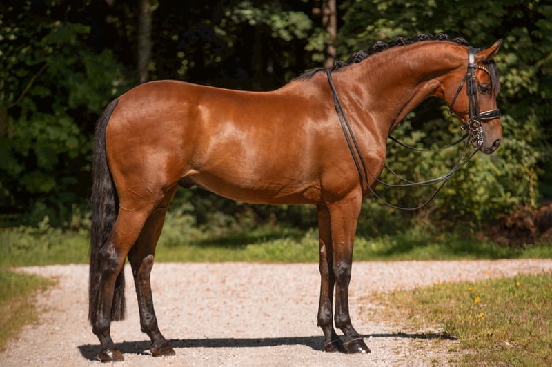 Dear interested parties, For appointment arrangements for trial rides, please send me a WhatsApp message. For further questions, I can be reached via WhatsApp during the day, and by phone best between 4 PM and 7 PM. I look forward to hearing from you. www.angelina-devittorio.de ⭐️Romanesco⭐️ Age: 12 years (2013) Height: approx. 1.67 m Pedigree: Romanov Blue Hors x Sandro Hit Training level: Dressage M, placed in L, leisure jumping Vet check: good x-ray images available For sale is a 12-year-old gelding, a son of Romanov Blue Hors out of a Sandro Hit mare. With a height of approx. 1.67 m, he perfectly suits both taller and shorter riders and impresses with his harmonious conformation. He is confidently trained at M level in dressage and placed in the L class, has competed at M level, and has achieved reserve rankings. Romanesco has an expressive trot, a comfortable and very practical canter, and a very good walk. He is super reliable in lessons and easy to ride. Very light in the hand – even in a bridle!! He is also a dependable partner in the field – brave, fearless, and a safe companion both alone and in a group. He is familiar with tractors, road traffic, etc. His temperament is consistently pleasant and people-oriented. He has no vices, is well-behaved in handling, making him an ideal horse for any amateur starting from E level; of course, support from a trainer would be beneficial. Romanesco loves attention and is always open to new experiences – a true heart horse that enjoys being pampered. He is only being sold to the very best of homes. Here is a dream amateur horse for sale that brings daily joy and fun. An ideal horse for ladies and youth. ⚜️ Phone: 0171-3438949 ⚜️ Email: a.devittorio@web.de ⚜️ https://www.ehorses.de/angelinadevittorio ⚜️ Facebook and Instagram: Angelina De Vittorio ⚜️ Videos available via WhatsApp: 0049 171 3438949