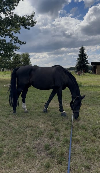 Unser charmanter Wallach überzeugt nicht nur mit seinem ausgeglichenen Charakter, sondern auch mit seiner freundlichen und menschenbezogenen Art. Er ist sowohl im Umgang als auch unter dem Sattel stets brav und unkompliziert. 🐴 Das macht ihn besonders: • zuverlässig und angenehm im täglichen Handling • sicher beim Reiten – egal ob in der Halle, auf dem Platz oder im Gelände • geht alleine oder in der Gruppe entspannt ins Gelände • vielseitig einsetzbar: Dressurarbeit, Bodenarbeit, Ausritte oder einfach gemeinsame Zeit Wir wünschen für uns für ihn ein Zuhause mit einer festen Bezugsperson in dem er gefördert, aber auch geschätzt wird. Das ist zu berücksichtigen: • Er reagiert empfindlich auf Staubbelastung und sollte dementsprechend angepasst gehalten werden. Aktuell steht der Wallach tagsüber in einer gemischten Herde draußen und Nachts in der Box. Bei Bedarf kann gegen Aufpreis gerne sein hochwertiges Equipment übernommen werden.