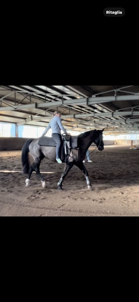 Star-noir is a Hanoverian horse of modest size but with a good conformation. Clinically, he shows no issues apart from a habit called “Ticchio,” which means he tends to bite the window when in his stable. He works as a riding school horse and has competed in show jumping events, even with beginner riders. He performs well both in the arena and in social interactions with other horses. He has an excellent aptitude for vaulting! He does not kick and is well-mannered. He is being sold because we currently have too many horses for our riding school and are seeking a new home for him.