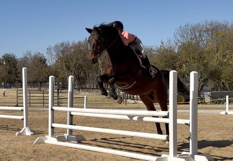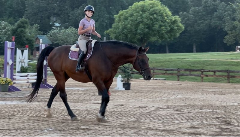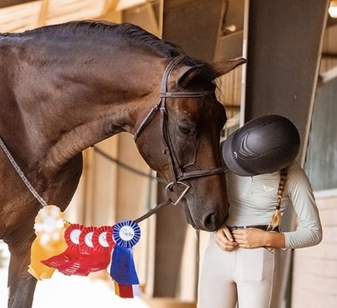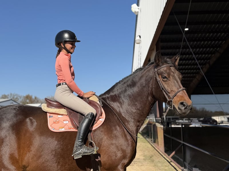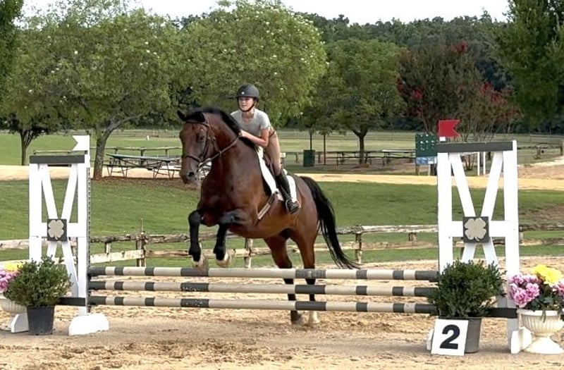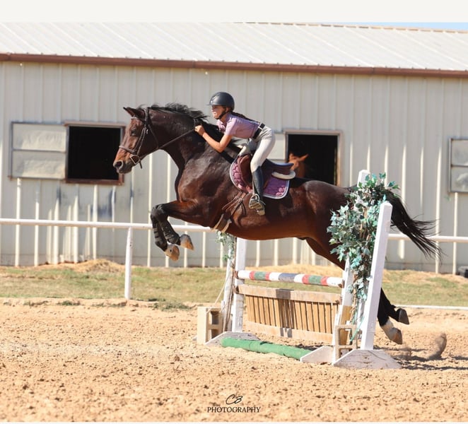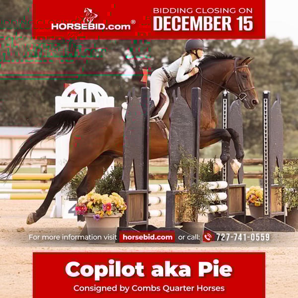 🎄𝐓𝐇𝐄 𝑯𝒐𝒍𝒊𝒅𝒂𝒚 𝐂𝐋𝐀𝐒𝐒𝐈𝐂🎄 Happening now thru MONDAY | DECEMBER 15th - Available EXCLUSIVELY on HorseBid's website! For more details and to register visit: www.Horsebid.com CONSIGNOR CONTACT: Combs Quarter Horses 727-741-0559 LOCATION: Cleburne, TX BREED: Hanoverian REGISTERED: Yes REGISTERED NAME: Copilot COLOR: Bay HEIGHT: 16.2 AGE: 16 GENDER: Gelding If you need a tried and true meter packer that you can maintain at home and ride like a quarter horse.. this is your guy!! Copilot aka Pie is the most amazing 16yr old 16.2h bay BRANDED HANOVERIAN gelding. Lifetime registered in the USEF and the USHJA with lots of show miles all the way up to the 1.25! Pie is best suited for the 3’6” and below riders. This is his happy place and where he will take you to the win! Currently being ridden by a 13yr old 4’11 rider. She has shown him successfully from the 2’3” up to the meters. She comfortably schools him at home 3’-3’3”. This is not your average quirky warmblood. He takes zero prep! He can sit for weeks. And you can tootle him around bareback and trail ride him!! He’s also got auto lead changes!! WESTERN EXPERIENCE: Pie will happily pack the western saddle around and trail ride with the best of them. He has the nicest slow canter and he even neck reins!! DISPOSITION: Pie gives the meaning to “in your pocket”. He’s always in your business and ready to get loved on! He absolutely adores people. He will leave friends or food just to get muzzle kisses!! Pie has the most laid back way about him you could easily teach even the timid “up down” lessons on him! We’ve let several beginner and inexperienced riders hack him around. He will even ride at night under the lights and shadows! Good around cows, dogs, cats and even a pestering goat! UPKEEP: This will surely be your favorite part! Pie eats two flakes of alfalfa twice a day. THATS IT! No supplements, no fancy grain.. just good hay keeps him fat as a tick! Pie requires absolutely no maintenance to keep him sound! We do keep him in shoes all the way around as a personal preference to give him support for the job we are asking him to perform. TURNOUT: Pie is super friendly and easy to get along with in the pasture. Has been turned out with mares and geldings without any fuss. BAD HABITS/ VICES: Pie has no nasty habits like buck, rear, bolt, bite or kick. Pie does like to turn around and walk out of a trailer if it is a step up. Pie also prefers to be on the rail when riding in heavy traffic at the horse shows. TACK: Pie rides English, western and bareback. He’s been easily ridden in halters, snaffles, a D with a port and a hackamore!