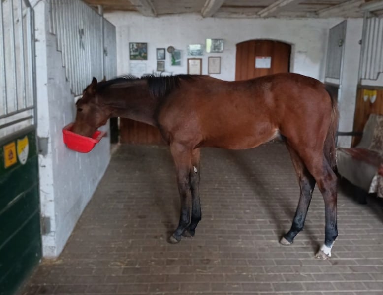 Grâce à son pedigree exceptionnel, ses mouvements très fluides et son caractère en or, ce jeune hongre est un véritable talent pour le dressage. Il a un avenir prometteur devant lui et est idéal pour les cavaliers souhaitant former eux-mêmes un cheval avec un potentiel énorme. Ce charmant hongre se distingue non seulement par son tempérament amical et confiant, mais aussi par son physique correct et ses trois allures de base parfaitement équilibrées. Il est magnifique, moderne, longiligne, montre beaucoup de joie de vivre dans ses mouvements, possède un tempérament exemplaire et un grand intérêt pour ses humains. Obéissant et agréable au quotidien, c’est un vrai rêve pour tout cavalier ! Le père du hongre est l’exceptionnel Valparaiso, 1er réserviste de la sélection de son keur, et fils du célèbre Viva Gold. Son pedigree combine les lignées de dressage de haut niveau de Weihegold, Fidermark et de la légendaire ligne V. Ces gènes promettent beaucoup de sportivité, de facilité à l’équitation et un potentiel énorme pour l’avenir dans le dressage. La mère du hongre, Rivaia, a déjà remporté plusieurs épreuves en L et s’est classée avec succès jusqu’à la classe M. Sa famille compte de nombreux succès jusqu’au Grand Prix, ce qui souligne le potentiel exceptionnel de ce cheval en dressage. Rivaia est reconnue pour son excellente aptitude à l’équitation et son caractère unique, des qualités qu’elle transmet également à sa progéniture. Troupeau de juments hannoveriennes de l’Adadonda : Étalon(s agréé(s) : Eros (v. Ernoe), Glock’s Victorio Grande (v. Vitalis), Marconi (v. Marcio xx), Superviser (v. Sensation), Walido (v. Werther) Chevaux de sport : Baltimore Dee (v. DSK Belstaff, Grand Prix), Be My Sunshine (v. Belissimo M, dressage S*), Bella Colorata M (v. Belissimo M, PSG/Inter I), Dancer M (v. Davignon I, dressage M*), Donnalucata (v. Dressage Royal, PSG/Inter I), Ferencio (v. Florencio I, dressage M*), Fleur De La Vie 3 (v. Franziskus FRH, dressage M*), Frawaldi (v. Werther, dressage S), Ironie III (v. Scarlett I, saut en liberté 1,40 m), Nexolia Feodoro (v. Fürstenball, PSG/Inter I), Ragazzina M (v. Rohdiamant, Grand Prix), Rhine Maiden (v. Rohdiamant, PSG/Inter I), Rossana (v. Rubin Royal, PSG/Inter I), Sigiriya M (v. San Amour I, dressage M*), Vento 53 (v. Vivaldi, dressage S), Vision (v. Vitalis, dressage M**), Walido 122 (v. Werther, dressage S), Waikiki (v. Wiesenbaum xx, dressage S), Walking On Sunshine M (v. Walt Disney I, dressage M*), Win At All M (v. Walt Disney I, PSG/Inter I).
