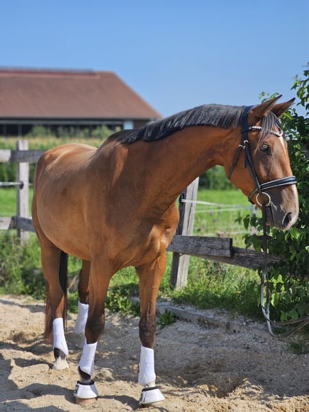 **Verkaufsanzeige: Hannoveraner Wallach** Zum Verkauf steht ein vielversprechender Hannoveraner Wallach, geboren im Jahr 2022. Fidelius hat aktuell ein Stockmaß von 165 cm und überzeugt durch seine harmonische Statur und sein ansprechendes Exterieur. Dieser junge Wallach zeigt großes Potenzial im Dressursport und ist bereits jetzt sehr lernwillig und talentiert. Mit seinem freundlichen Wesen und seiner aufgeschlossenen Art wird er mit Sicherheit mal ein verlässlicher Freizeitpartner. Er ist gut erzogen, brav im Umgang und hat bereits erste Erfahrungen an der Longe gesammelt. Wegen Zeitmangel ist er noch nicht geritten. Seine Bewegungen sind raumgreifend und ausdrucksstark, was ihn zu einem idealen Partner für die Dressur macht. Der Wallach ist gesund, regelmäßig geimpft und entwurmt. Er steht aktuell im Offentstall im einer gemischten Herde und zeigt sich sehr sozial. Bei Interesse oder für weitere Informationen stehe ich Ihnen gerne zur Verfügung.