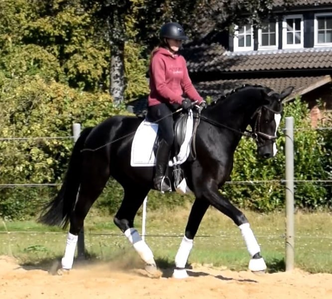 A fantastic training horse with a lot of quality for the dressage arena and an unbeatable character! Livaldo is now well started under saddle and on his way to Dressage Horse A level. He excels in his tasks and is developing wonderfully in daily work. He has already completed his first outings outside. Livaldo is very well-behaved, easy to ride, and eager to learn, making him perfect for amateurs and young riders. He is also a real treasure to handle and is always up for some fun. Livaldo comes directly from the breeder and has grown up in a herd environment. Current, very good X-ray images are available. Upon request, we are happy to send you additional training videos.