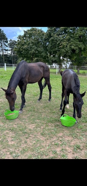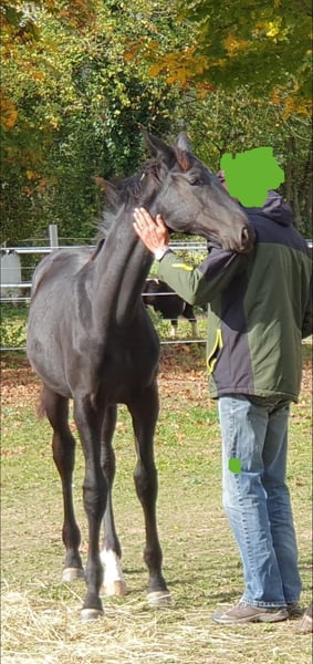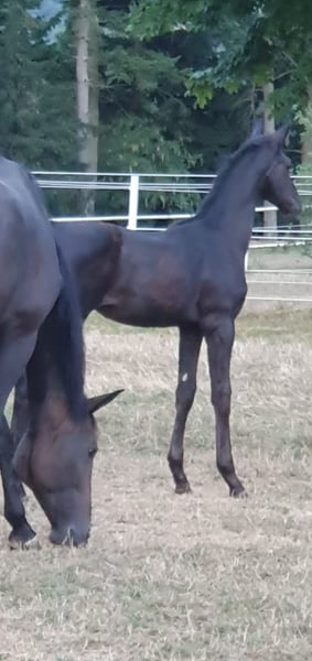 Pour des raisons de santé, nous devons nous séparer, le cœur lourd, de notre coup de cœur. Hongre noir de 2 ans, fils du cheval de l'élevage de Celle Fürst Belissaro (récompensé par le prix Weltmeyer et reconnu pour sa grande montabilité et sa volonté de performance), issu d'une mère Dimaggio/Warkant. Dimaggio a été champion du monde des chevaux de dressage à l'âge de 5 ans et Warkant était un trotteur actif à Celle. Ce jeune cheval possède un pur sang de dressage. Il a hérité de la finesse, de longues jambes ainsi que de l'élasticité de sa mère. Nous l'avons élevé avec beaucoup d'amour et d'engagement (car élevage privé) jusqu'au sevrage. Actuellement, il profite de sa jeunesse au pré. Veuillez seulement faire des demandes vraiment sérieuses - cela nous est déjà assez difficile. Les revendeurs, absolument inutiles !!!