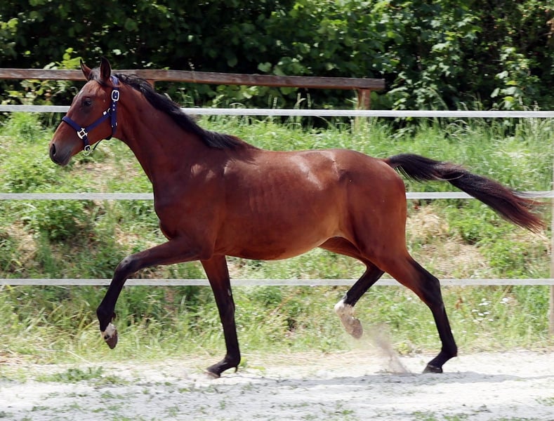 Gran oportunidad de criador: Caballo de doma de calidad en formación, hijo del campeón del Bundeschampionat Benicio, disponible para ser educado a largo plazo con opción de compra. Su madre es media hermana de la yegua campeona Visser's Hit Valeria VEC OLD (ganadora en serie de pruebas de caballos de monta hasta y incluyendo pruebas de doma -S-, tres veces finalista del Bundeschampionat). La abuela proviene de una yegua de Gran Prix de gran éxito internacional, cuyo hermano también ha tenido éxito en el deporte de la doma internacional hasta el Gran Prix. Su hermana es madre de dos sementales aprobados (exitosos en los Bundeschampionaten y en el Campeonato Mundial de caballos jóvenes de doma, ganador de una clasificación para el Nürnberger Burgpokal...). Él es aún joven y sin entrenamiento adecuado, pero es fácil de manejar. Su altura final se situará alrededor de 1,70 m. Si se desea, podría ser castrado antes de la mudanza. Solo se venderá a jinetes de la clase de rendimiento 5 con experiencia en caballos jóvenes o con la ayuda correspondiente en el trabajo de longe. Todos los costos deben ser asumidos. El caballo puede mudarse a nivel nacional y también podría ser transportado por nosotros.