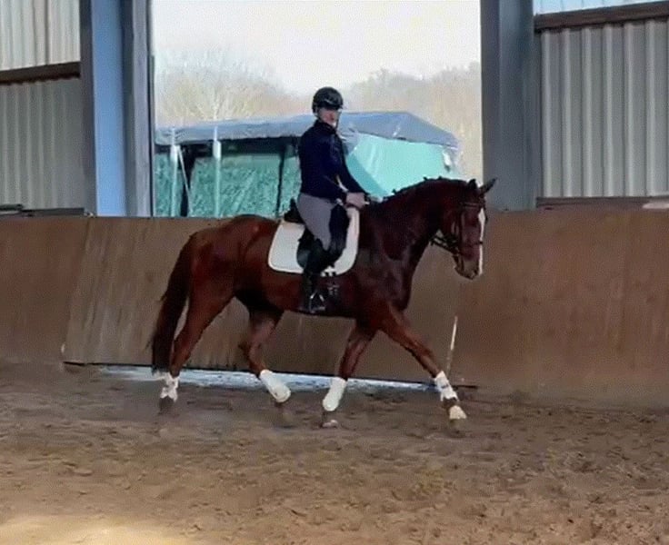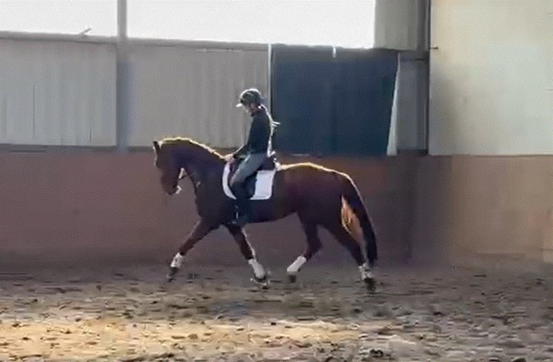 Dieser attraktive 4-jährige Hannoveraner Wallach überzeugt sowohl durch seine interessante Abstammung als auch durch seine Rittigkeit. Er ist seit etwa zwei Monaten unter dem Sattel und zeigt sich bereits sehr ausbalanciert, lernwillig, unkompliziert und stets motiviert bei der Arbeit. Abstammend von Damaschino, bringt er beste Voraussetzungen für eine erfolgreiche Zukunft im Dressursport mit. Auch mütterlicherseits stammt er aus einem äußerst erfolgreichen Stutenstamm. Seine Großmutter ist die Vollschwester des legendären Dressurpferdes Warum Nicht, und aus der direkten Familie stammen mehrere erfolgreiche Dressurpferde bis zur Klasse M und S. Ein hochinteressantes Nachwuchspferd für den Dressursport, das aufgrund seiner Abstammung, seiner Qualität und seines angenehmen Charakters viel Perspektive für die weitere Ausbildung bietet.
