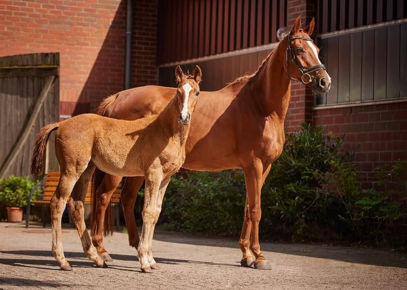 Our 4-year-old Hanoverian gelding "Delian" impresses with both his outstanding pedigree and his pleasant, rideable character. He has been under saddle for approximately two months and convices by his natural balance, his very good attitude to work, willingness to learn, and great rideability. He descends from Damaschino, known for producing modern, talented dressage horses with expressive movement and strong rideability. On the dam line, he comes from a very successful mare family. His granddam is the full sister of the legendary dressage horse Warum Nicht ridden by Isabell Werth, and the family has produced multiple M- and S-level dressage horses successfully competing in sport. With his top Hanoverian bloodlines, strong dam line, and excellent attitude, he is a very interesting young horse for dressage sport and further development.