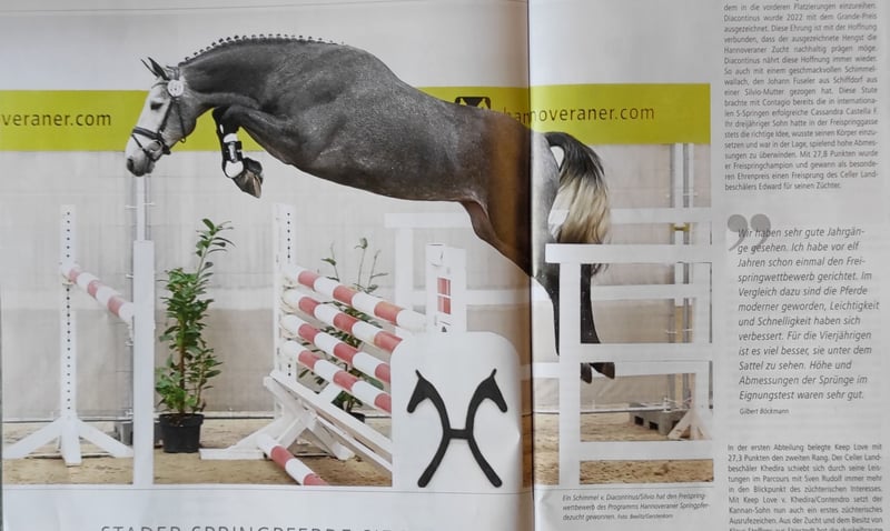 Verkaufe eleganten Hannoveraner Wallach – ideal für Springreiter! Zum Verkauf steht ein wunderschöner Schimmel-Wallach, geboren im Jahr 2021. Mit einem Stockmaß von 167 cm bietet er die perfekte Größe für ambitionierte Reiter. Der Hannoveraner überzeugt durch seine hervorragende Springveranlagung und sein freundliches Wesen. Er ist gut ausgebildet, zuverlässig im Umgang und zeigt großes Potenzial im Springsport. Eigenleistung in 2024: Hannoveraner Freispringwettbewerb in Verden der 3-jährigen gewonnen. (Siehe Bilder) Ein tolles Pferd für Reiter, die einen zuverlässigen Partner suchen, der Freude am Springen hat und sich stetig weiterentwickeln möchte. Bei Interesse und für weitere Informationen stehe ich gerne zur Verfügung, unter Tel.-Nr. 0176-41710805