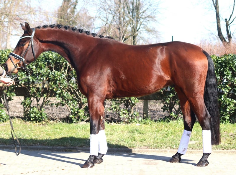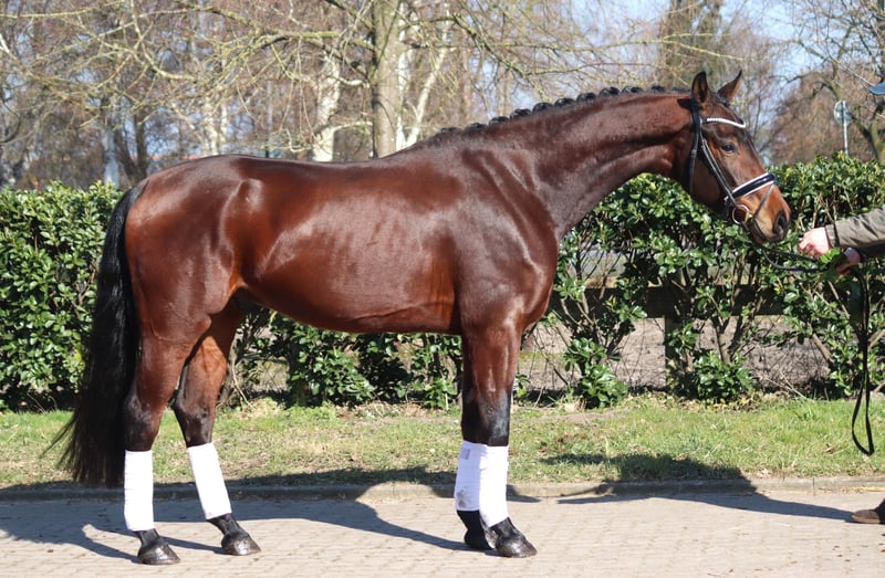 Sympathique hongre de 3 ans par Vitalis x Fürstenball, avec trois bonnes allures de base. Il est très sage à manipuler, actuellement pas encore débourré. En raison de son pedigree, il apporte certainement une bonne montabilité et du talent pour le grand carré. Prix HT. Demandes uniquement par téléphone, les e-mails ne seront pas répondus.