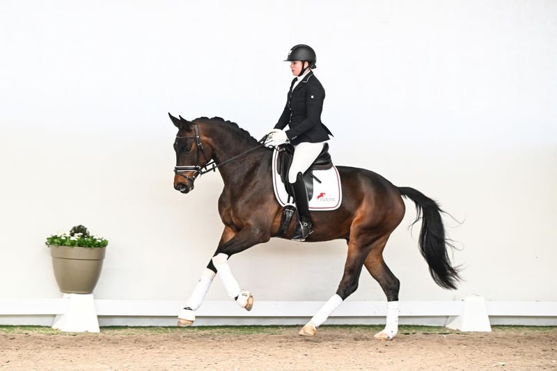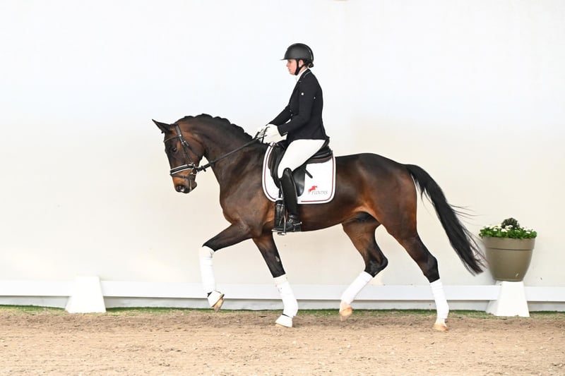 Valdini is a four-year-old gelding who is still very much in the midst of his development and has by no means reached the full extent of his potential. A highly appealing young horse who continues to gain expression and quality with each passing day. Even at this stage, he impresses with an expressive, rhythmical trot and an uphill canter, providing an excellent foundation for his further training. His movements are characterized by natural elasticity and create a harmonious and pleasant overall picture. A horse that immediately captivates the observer with his presence and charisma. Particularly noteworthy is his character: well-balanced, friendly, and always people-oriented. A truly reliable partner in daily handling, who will bring great enjoyment to his rider. His pedigree is equally outstanding: his sire, Valdiviani, trained under Isabell Werth, is known for rideability, expression, and exceptional athletic potential. His dam, Sansiera, has already produced two licensed sons and descends from a highly successful dam line. In the third generation appears the State Premium mare Reine Freude, one of the most influential mares of her line, who produced, among others, the NRW Champion stallion and foundation sire Fidertanz. Valdini thus combines all the attributes for a successful future: correct conformation, high-quality movement, and a character one could wish for. A young prospect with tremendous potential—ideal for riders who take pleasure in developing a talented and genuine partner.