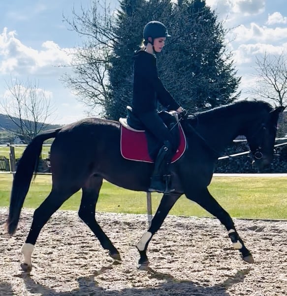 angerittenes Dressur-Reitpferd mit großen Bewegungen und Balance