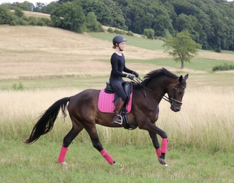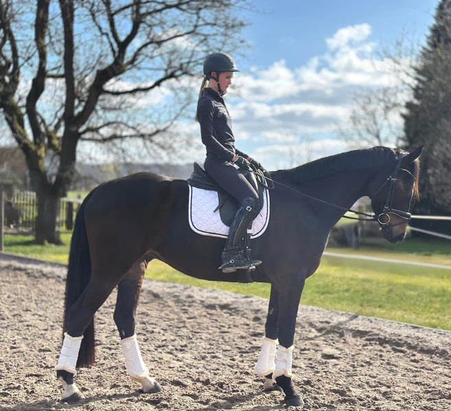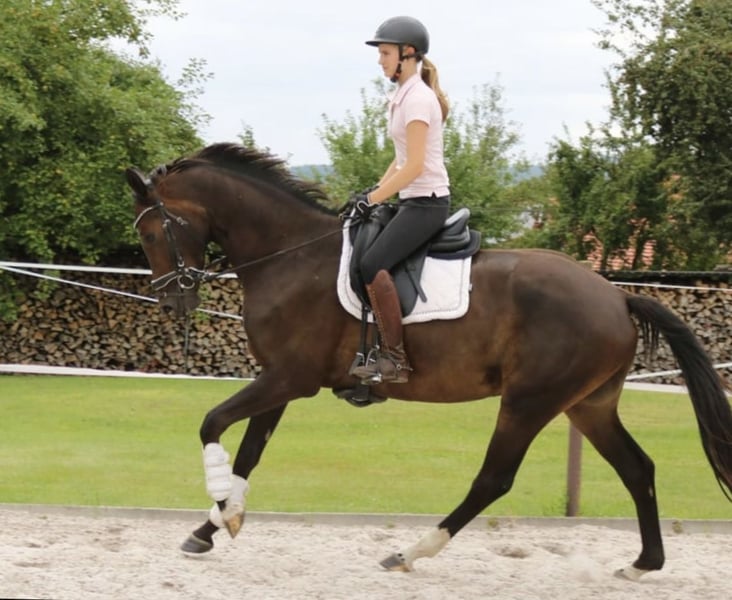 Rundum TOLLES REITPFERD für Dressur, aber auch Freizeit und Gelände direkt vom Züchter, aus 1. Hand ist er 4j. schonend angeritten aktuell auf dem Weg zur L-Dressur. Bernie hat 3 sehr gute GGA, top Schritt, schöner SCHWUNG im Trab, schön aktives HINTERBEIN und damit PERSPEKTIVE für deutlich mehr. Tolles Reit / Sitzgefühl. Der Vollbruder seiner Mutter war Elite-Auktionspferd und lief erfolgreich S*-Dr. die 4*S- Dr.Stute Schöne Scarlett ist aus der Londonderry- Großmutter, weitere erfolgreiche Dressurpferde aus dem Stamm.. Aufgrund seines Charakters und seiner Arbeitseinstellung ist er auch ein ideales AMATEUR- oder Umsteigerpferd oder auch für ÄLTERE/n Reiter/in- seine Mutter wurde auch nach Ende als Zuchtstute an 70j. Dame in die Schweiz verkauft... rundum problemlos im täglichen Umgang, NETT mit allen anderen Pferden, sehr anhänglich, zutraulich, den muß man einfach LIEBHABEN durchweg robust in Haltung, Weide, Futter läuft derzeit noch problemlos ohne Eisen Herzlich Willkommen Bernie kennen zu lernen !