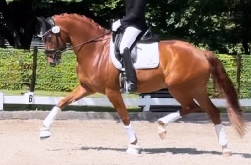 Dreamy Hanoverian Gelding** For sale is an impressive Hanoverian gelding, born in 2020. With a height of 171 cm and his beautiful chestnut color, he attracts all attention. This talented gelding is well-suited for dressage and is already showing promising progress in his training. He impresses with his elegant movement and his friendly, balanced temperament. He is well-mannered, well-educated, and suitable for both experienced riders and ambitious riders looking for a promising horse for the future. Achievements: Young horse competition won with over 81%. If you are interested or need further information, please feel free to contact me. Don't miss this opportunity to find such a wonderful partner!