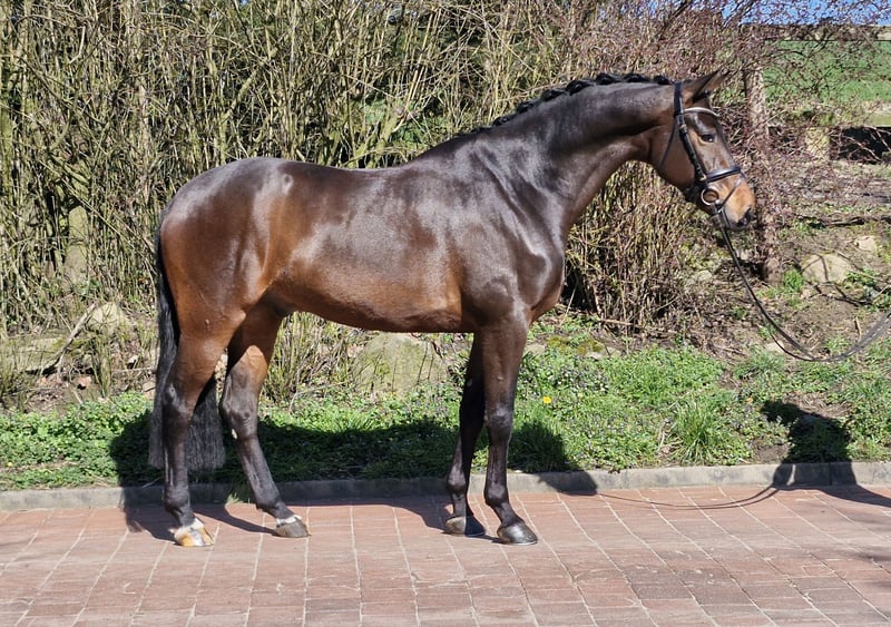 Versus ist bei uns geboren und aufgewachsen. Er ist das letzte Fohlen unserer Raffinesse. Im vergangenen Jahr absolvierte er seine ersten Turniere und konnte sich sowohl in Reitpferde- als auch in Dressurpferdeprüfungen platzieren. Anfrage bitte telefonisch! Christian Thelker +49 175 854 3529