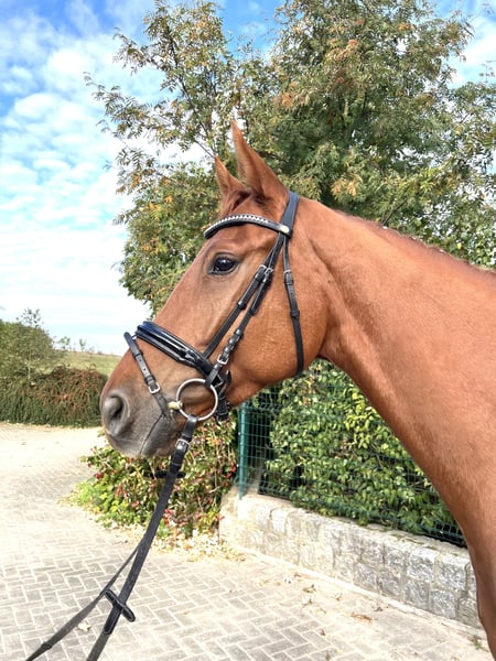 Dieser charmante, lernfreudige, Hannoveraner Fuchswallach, namens Villie Vilados, aus dem ersten hervorragenden Jahrgang des prämierten MP Vivaldos, mit einer ausgezeichneten Leistungsgenetik, ist stetig bestrebt, sich von seiner besten Seite im Umgang zu geben. Mit bestem Rötgenbildern ausgestattet, ist er offen freundlich und baut gerne eine Bindung zu seinem Menschen auf. Durch seinen guten und korrekten Charakter, konnte er eine sichere, solide und harmonische Grundausbildung genießen, welches dem neuen Besitzer in jedem Fall zu Gute kommt. Villie ist schonend und spielerisch eingeritten und A-fertig ausgebildet und steht bereits sensibel am Schenkel für Seitengänge. Sein blutgeprägtes Erscheinungsbild und seine Größe (derzeit 175cm) wurden beim 4-jährigen Ein-/Anreiten berücksichtig, auf das er Freude am Tun mit Menschen hat und behält. Villie ist bereits als Absetzen zu uns gekommen und routiniert in jeglichen, menschlichen Umgang. Er ist Herdenbetrieb und Koppel gewohnt, ist Wasser-/ schmiede- und verladefrom und es kann von ihm, nahtlos, aus seinen Entwicklungsphasen berichtet werden. Villie Vilados ist lässig in Begegnung mit Hunden, sowie Landwirtschaftlichen Fahrzeugen. Selbst in die Ostsee ist er als 3 Jähriger, als Handpferd vertrauensvoll mit rein spaziert. Durch seine geschlossene Größe und Farbe ist Villie Vilados ein Blickfang im Dressur Viereck und er ist bereits erfolgreich in seiner ersten Saison in A-Dressurpferdeprüfung mit Platzierungen nach Hause gekommen. Villie soll nun zu einem neuen Herzensmenschen finden, auf das er weiter gefördert werden kann. Er steht in 18279, damit er weiter im Training bleibt. Bei konkreten Absprache steht er für Probereiten zur Verfügung.