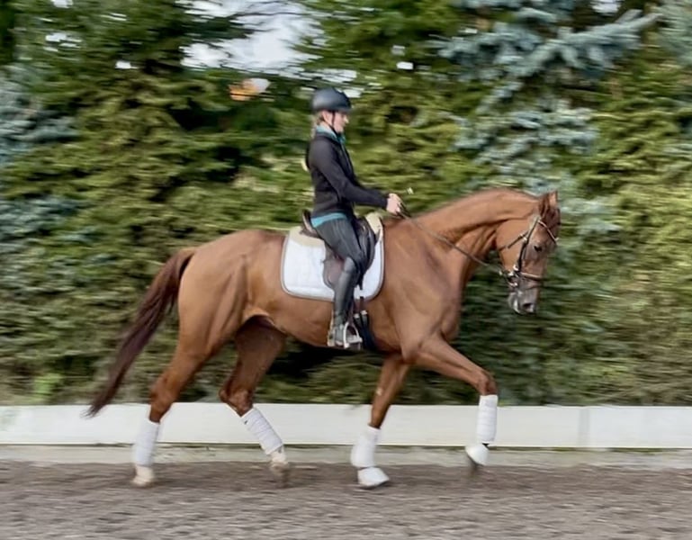 Eleganter Hannoveraner Wallach – ideal für ambitionierte Dressurreiter! Dieser wunderschöne großrahmige Fuchs-Wallach wurde im Jahr 2021 geboren und besticht durch seine beeindruckenden GGA und seine überzeugende Rittigkeit. Seine Lernbereitschaft machen ihn zu einem tollen Partner für den ambitionierten Reiter fürs große Viereck. Der Wallach ist gesund, regelmäßig geimpft und wurde artgerecht aufgezogen in einem von Deutschlands besten Aufzuchtbetrieben. Er zeigt sich im Umgang freundlich und sehr lieb. Er kennt täglichen Weide/Paddockgang sowie die Führmaschine. Seine Bewegungen sind elegant und taktvoll, was ihn perfekt für das Dressurviereck macht. Bei Interesse oder für weitere Informationen stehe ich gerne zur Verfügung. Eine Besichtigung und Proberitte sind nach Vereinbarung möglich. Video kann per WhatsApp geschickt werden. Ein Pferd mit viel Potenzial wartet auf einen neuen, engagierten Reiter!